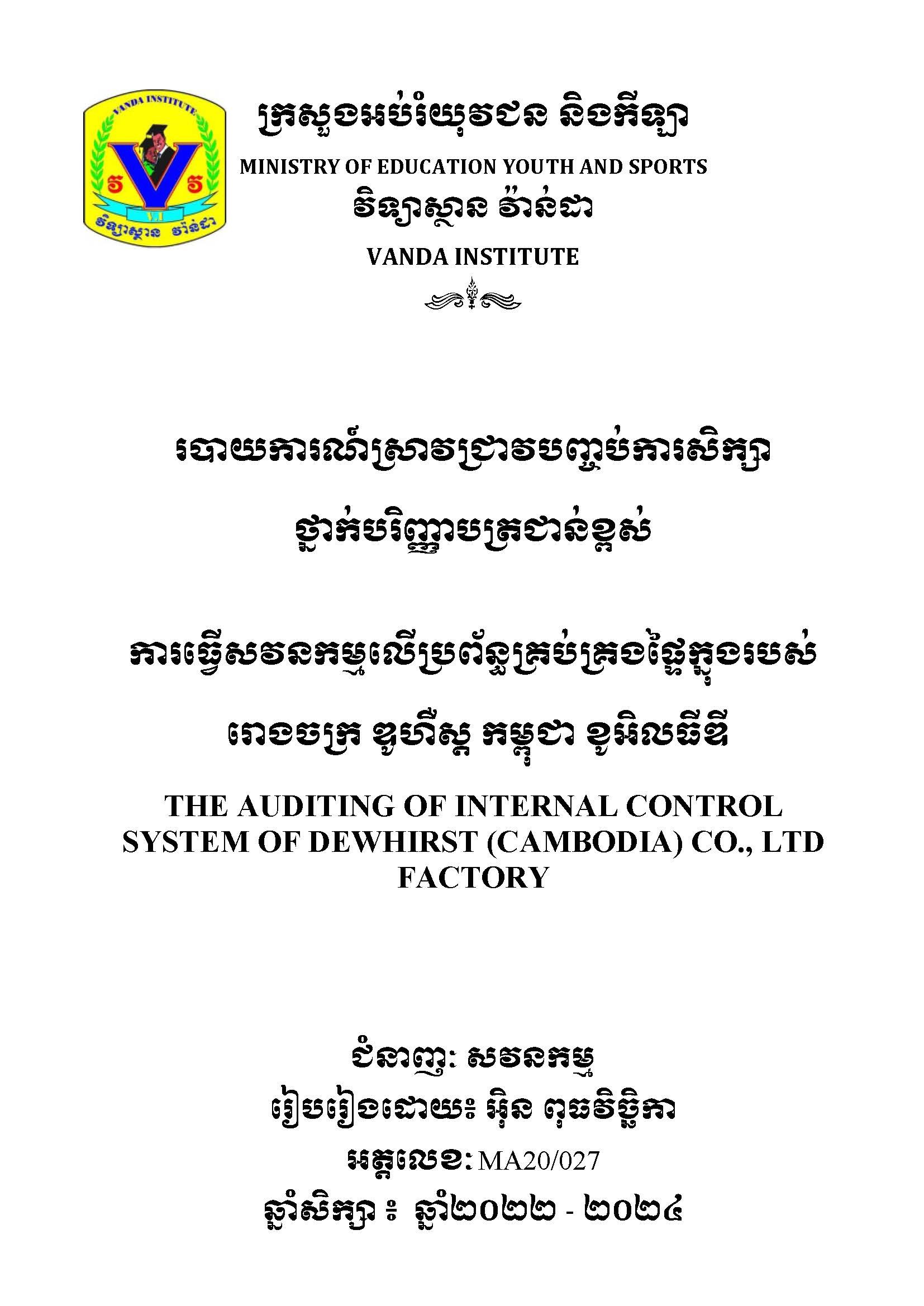របាយការណ៍ស្រាវជ្រាវបញ្ចប់ថ្នាក់បរិញ្ញាបត្រជាន់ខ្ពស់ ជំនាញ សវនកម្ម / FinalPaper