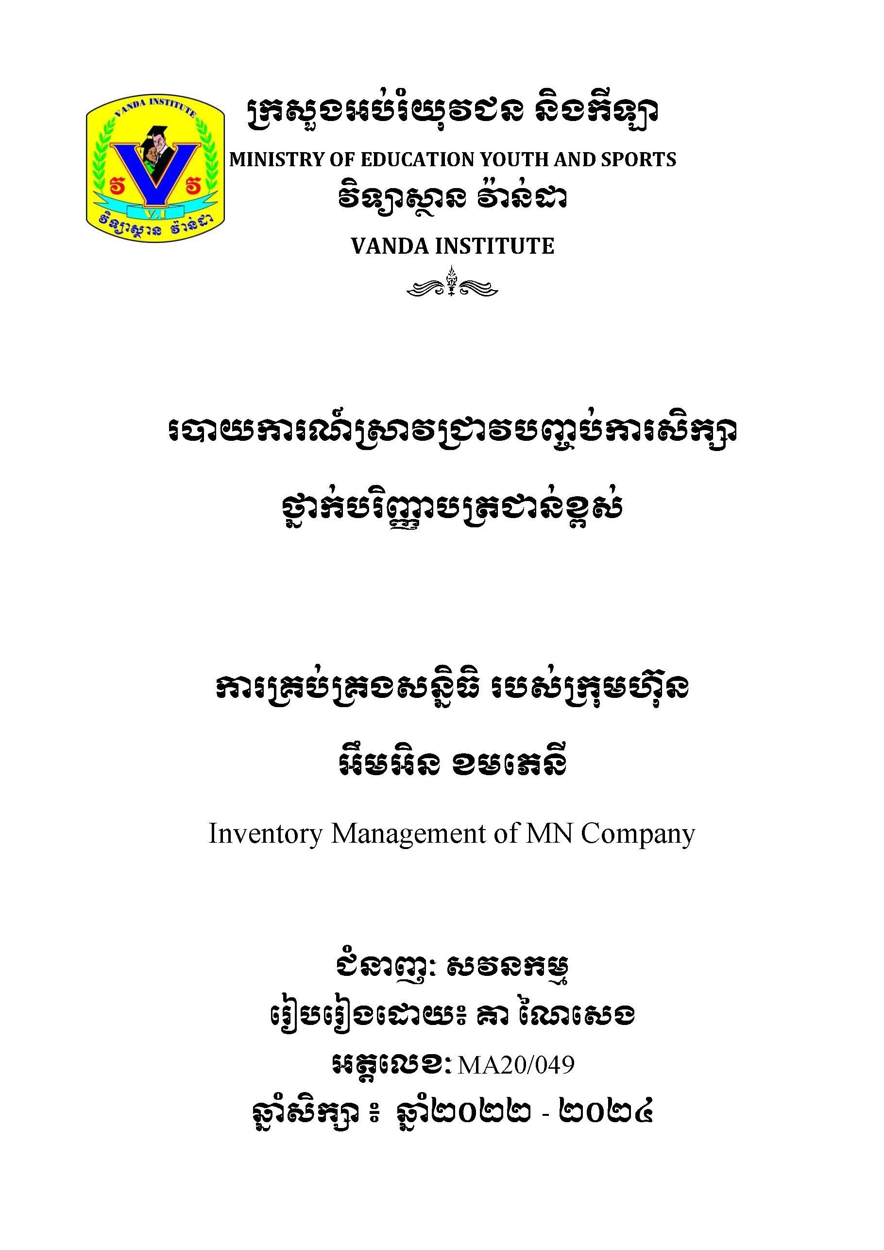 របាយការណ៍ស្រាវជ្រាវបញ្ចប់ថ្នាក់បរិញ្ញាបត្រជាន់ខ្ពស់ ជំនាញ សវនកម្ម / FinalPaper
