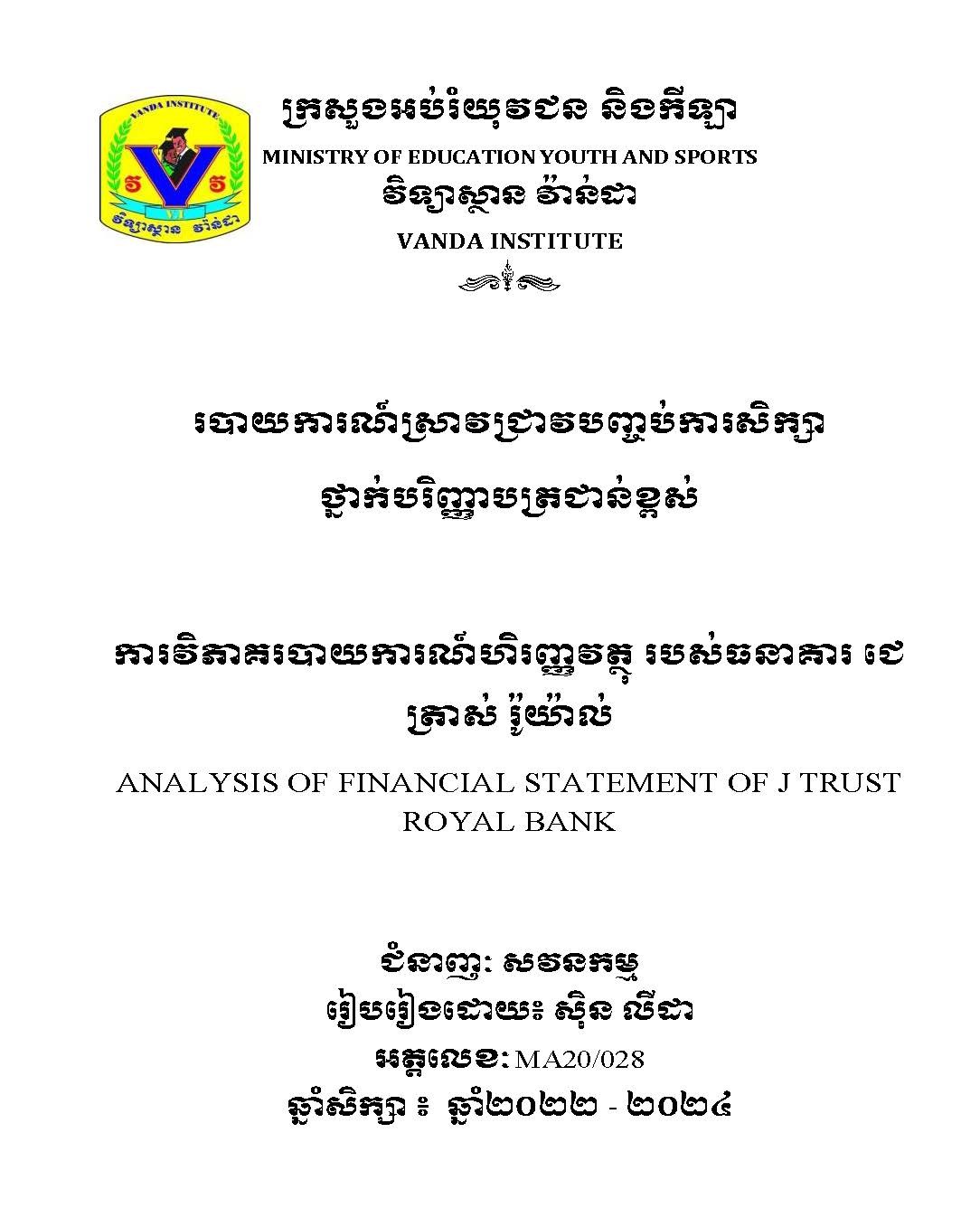 របាយការណ៍ស្រាវជ្រាវបញ្ចប់ថ្នាក់បរិញ្ញាបត្រជាន់ខ្ពស់ ជំនាញ សវនកម្ម / FinalPaper