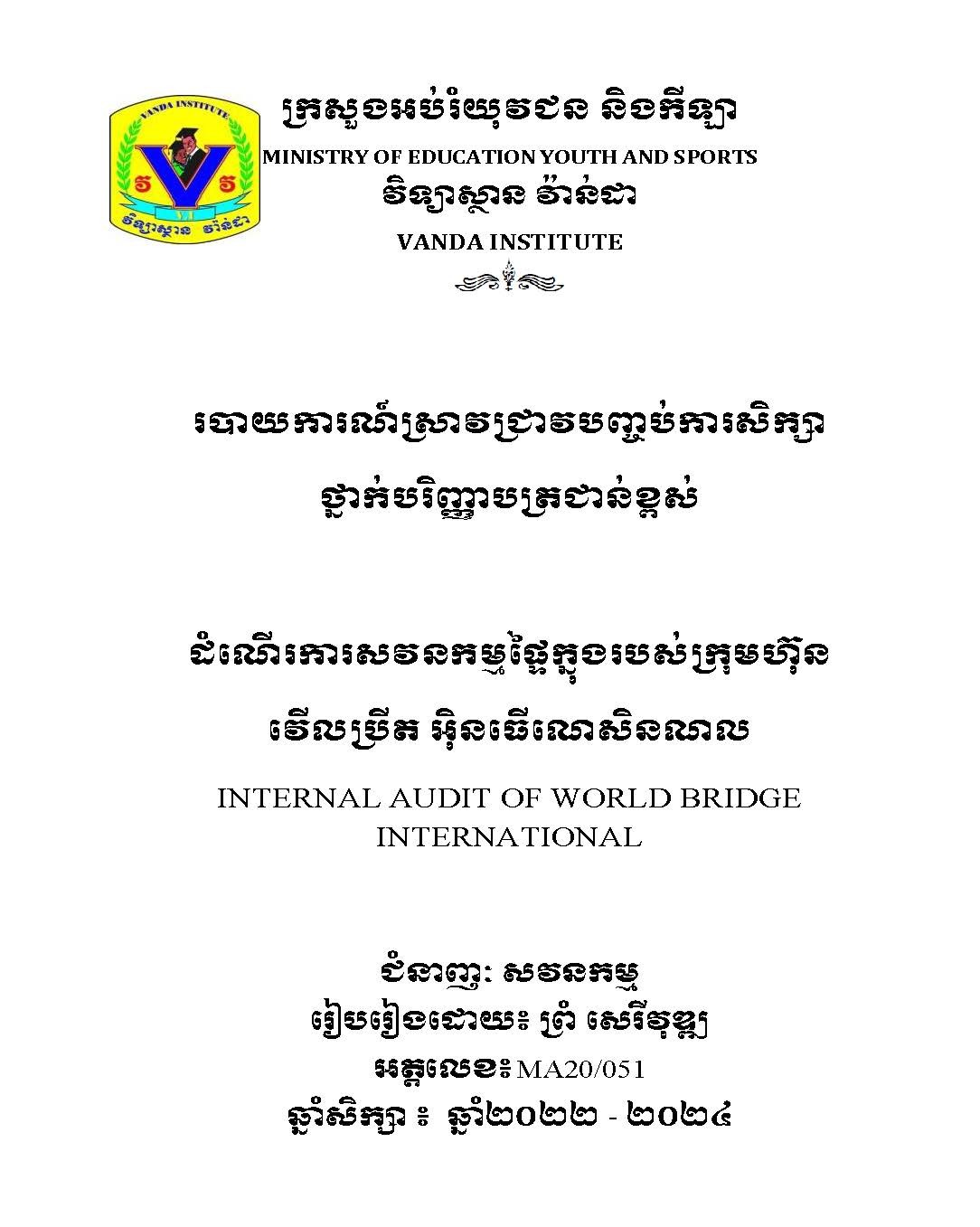 របាយការណ៍ស្រាវជ្រាវបញ្ចប់ថ្នាក់បរិញ្ញាបត្រជាន់ខ្ពស់ ជំនាញ សវនកម្ម / FinalPaper