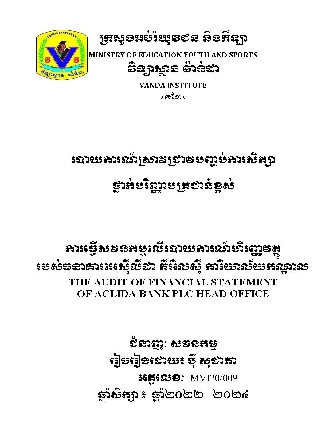 របាយការណ៍ស្រាវជ្រាវបញ្ចប់ថ្នាក់បរិញ្ញាបត្រជាន់ខ្ពស់ ជំនាញ សវនកម្ម / FinalPaper
