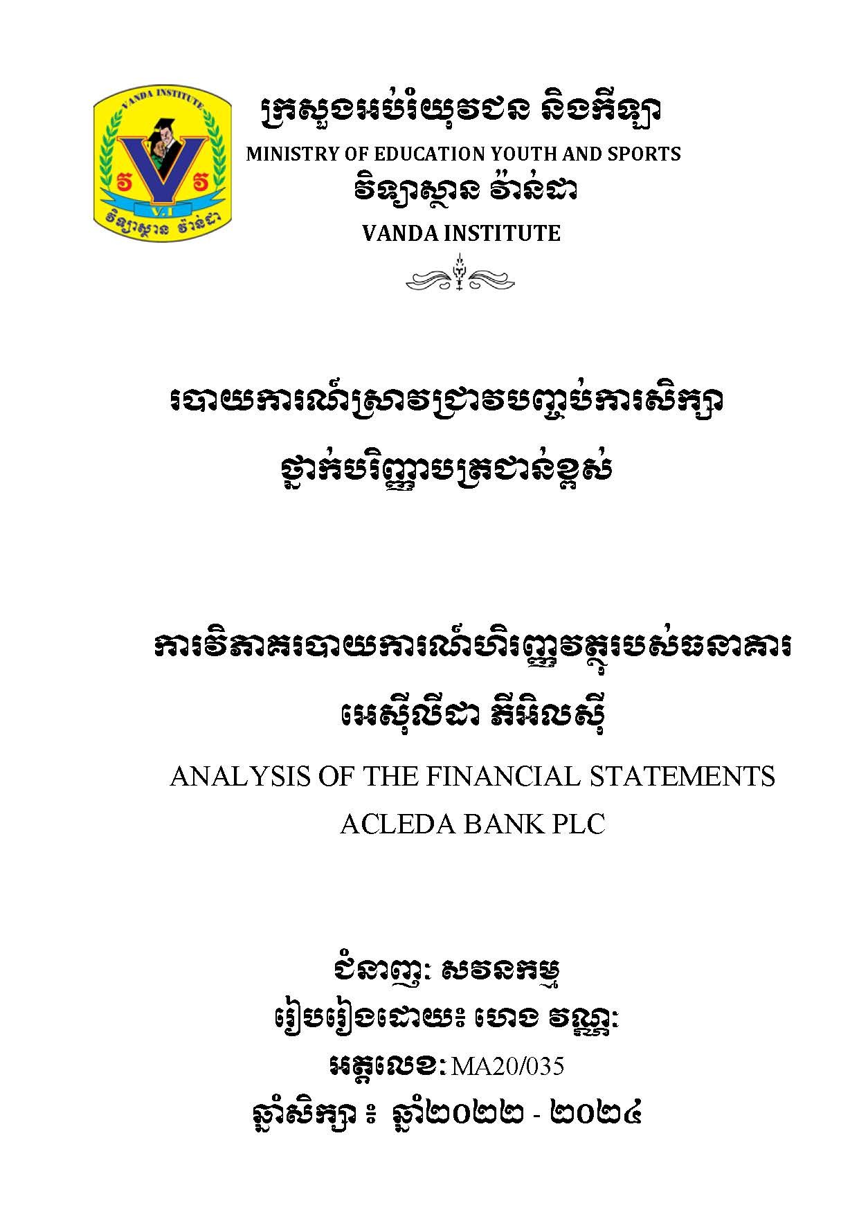របាយការណ៍ស្រាវជ្រាវបញ្ចប់ថ្នាក់បរិញ្ញាបត្រជាន់ខ្ពស់ ជំនាញ សវនកម្ម / FinalPaper