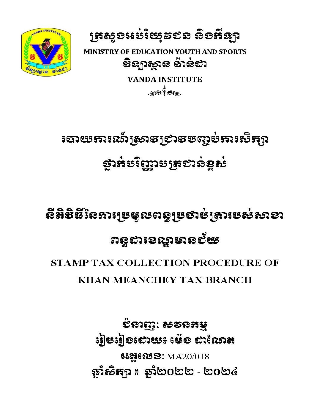 របាយការណ៍ស្រាវជ្រាវបញ្ចប់ថ្នាក់បរិញ្ញាបត្រជាន់ខ្ពស់ ជំនាញ សវនកម្ម / FinalPaper