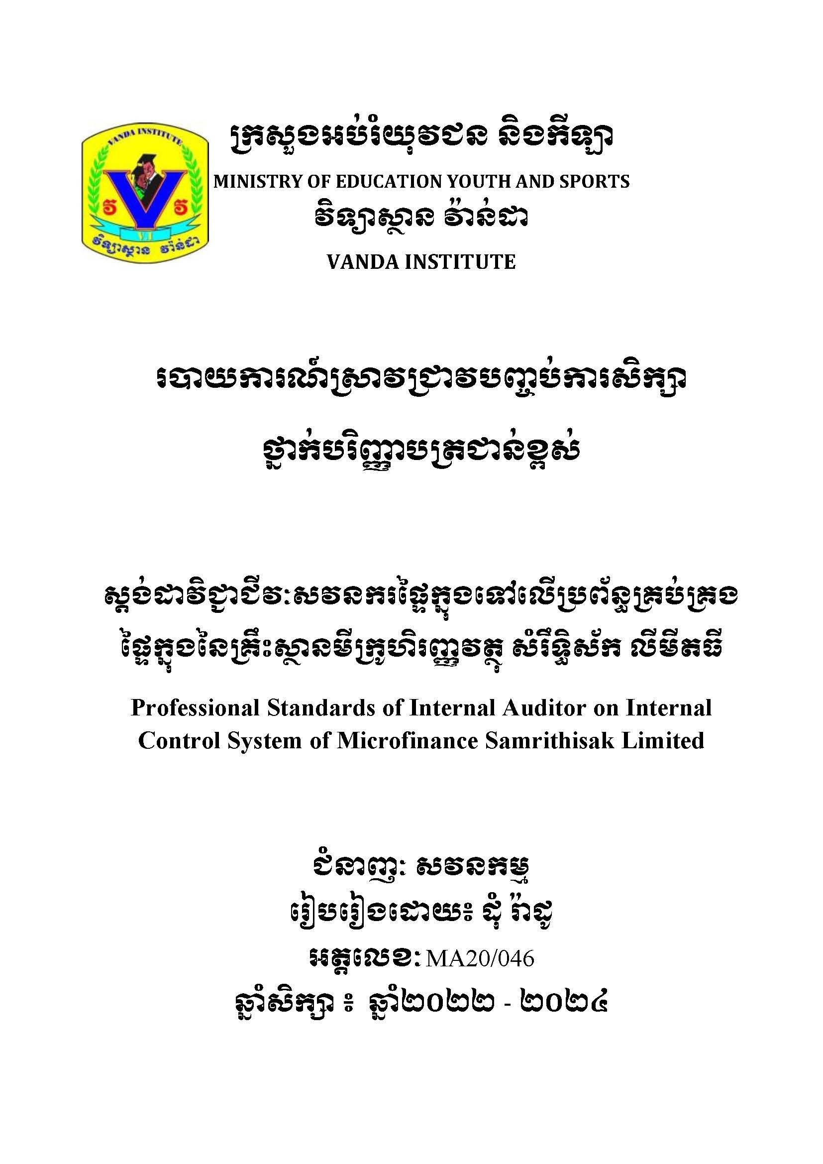 របាយការណ៍ស្រាវជ្រាវបញ្ចប់ថ្នាក់បរិញ្ញាបត្រជាន់ខ្ពស់ ជំនាញ សវនកម្ម / FinalPaper