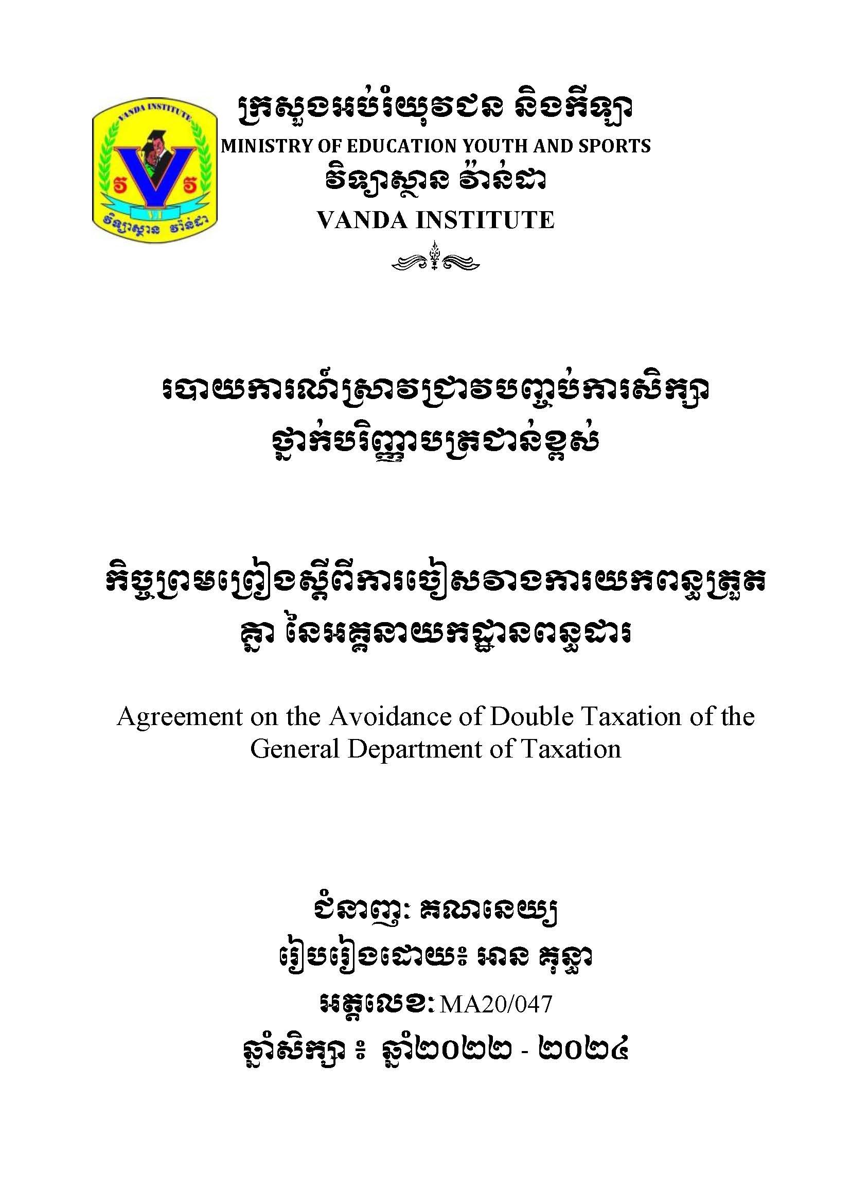 របាយការណ៍ស្រាវជ្រាវបញ្ចប់ថ្នាក់បរិញ្ញាបត្រជាន់ខ្ពស់ ជំនាញ សវនកម្ម / FinalPaper
