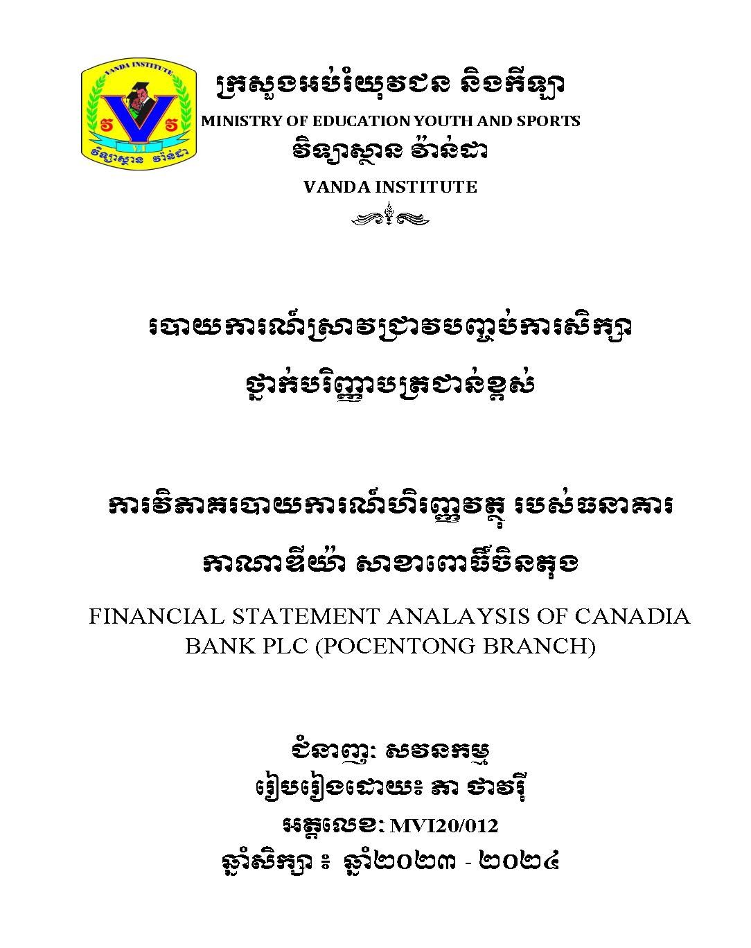 របាយការណ៍ស្រាវជ្រាវបញ្ចប់ថ្នាក់បរិញ្ញាបត្រជាន់ខ្ពស់ ជំនាញ សវនកម្ម / FinalPaper