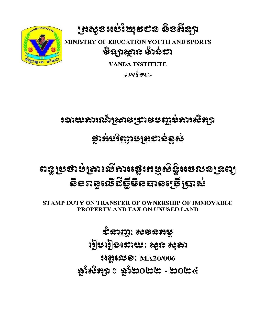 របាយការណ៍ស្រាវជ្រាវបញ្ចប់ថ្នាក់បរិញ្ញាបត្រជាន់ខ្ពស់ ជំនាញ សវនកម្ម / FinalPaper