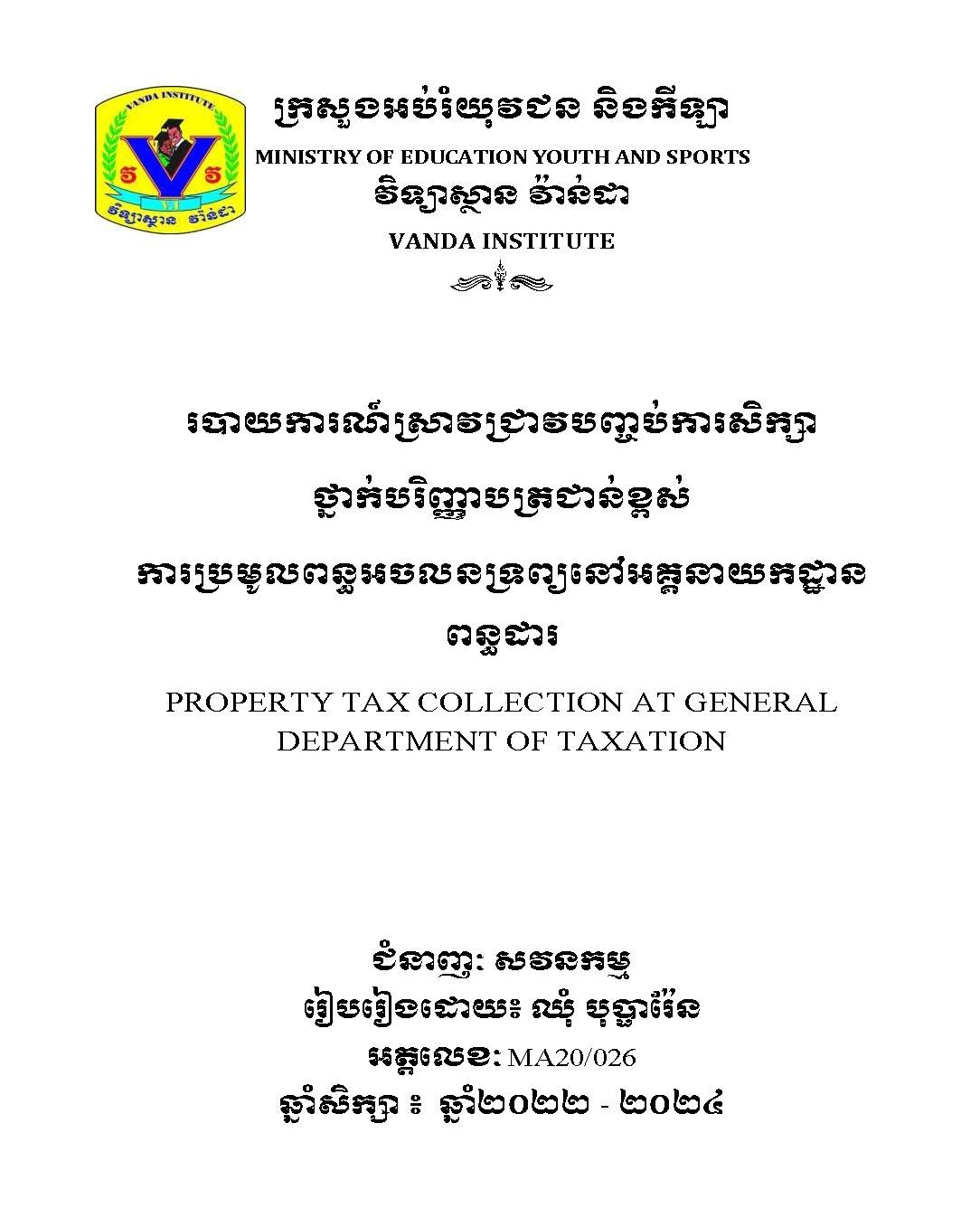 របាយការណ៍ស្រាវជ្រាវបញ្ចប់ថ្នាក់បរិញ្ញាបត្រជាន់ខ្ពស់ ជំនាញ សវនកម្ម / FinalPaper