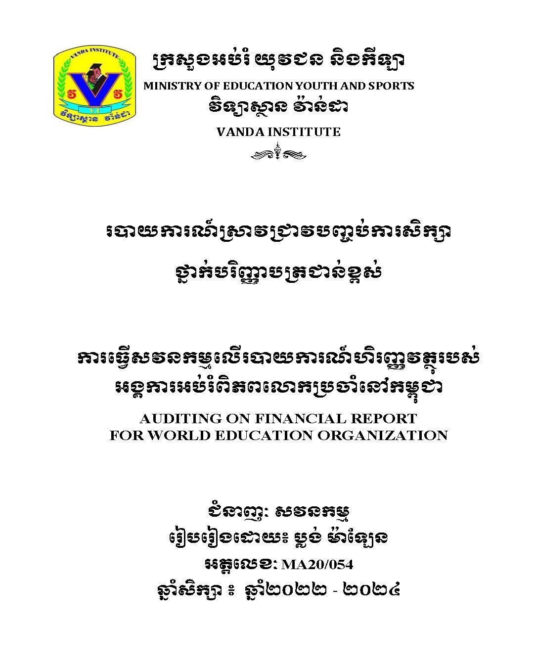 របាយការណ៍ស្រាវជ្រាវបញ្ចប់ថ្នាក់បរិញ្ញាបត្រជាន់ខ្ពស់ ជំនាញ សវនកម្ម / FinalPaper