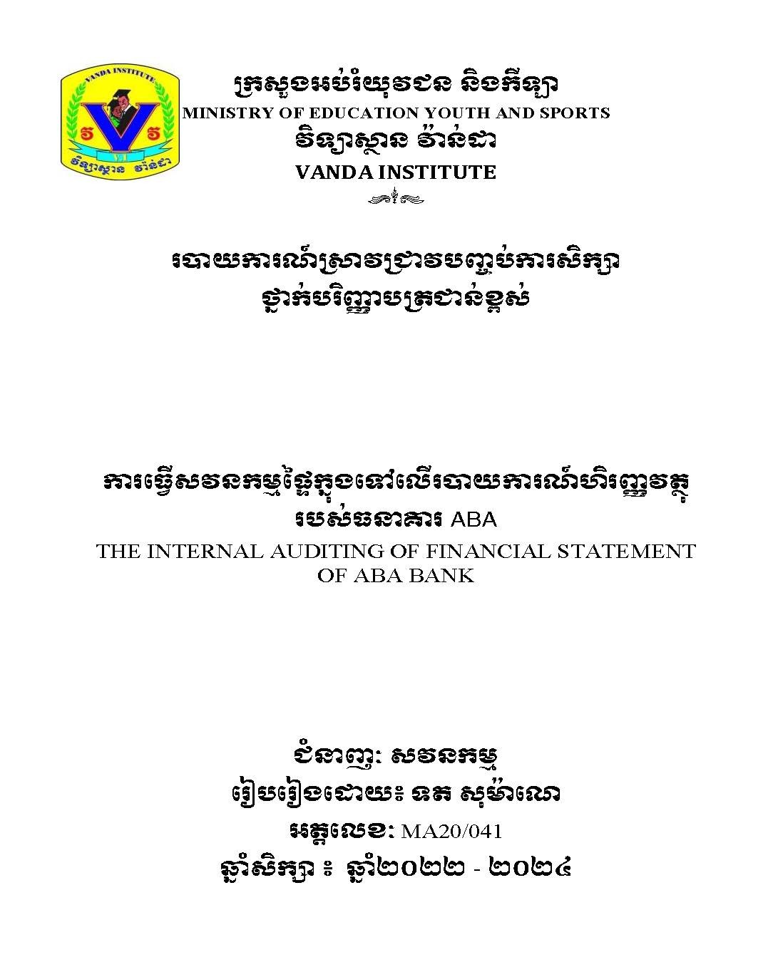 របាយការណ៍ស្រាវជ្រាវបញ្ចប់ថ្នាក់បរិញ្ញាបត្រជាន់ខ្ពស់ ជំនាញ សវនកម្ម / FinalPaper