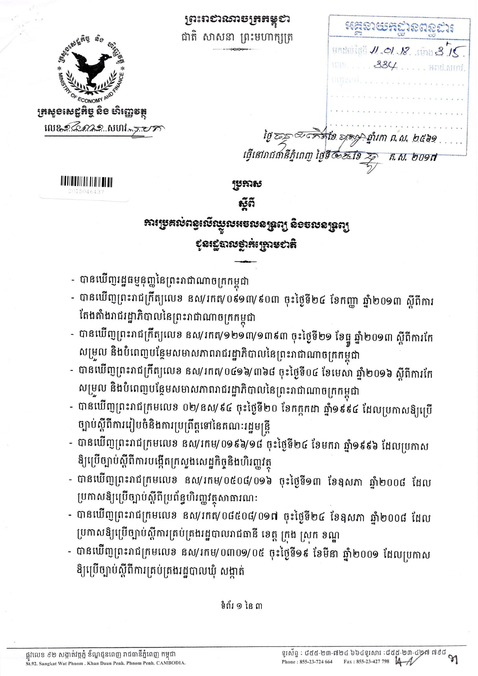 ប្រកាស ស្តីពី ការគ្រប់គ្រងប្រមូលពន្ធលើឈ្នួលផ្ទះ និងដី