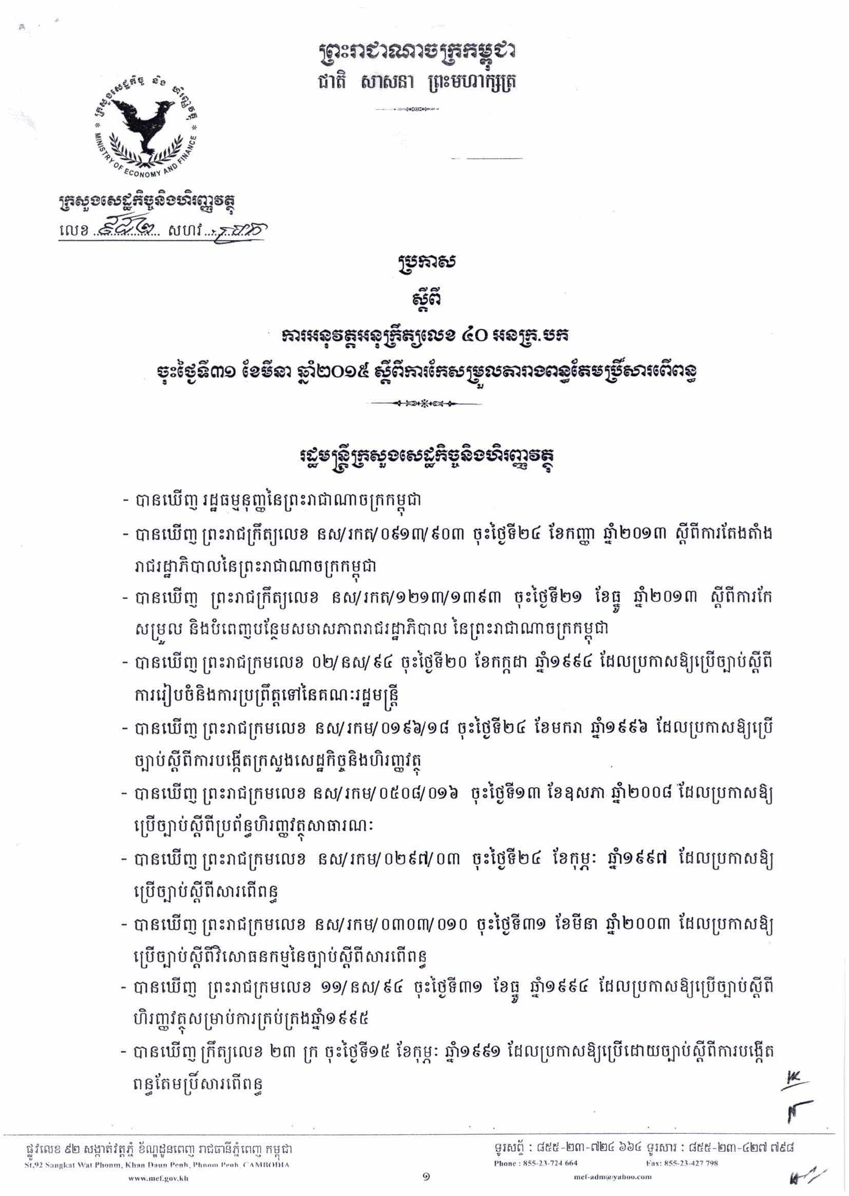 សេចក្តីជូនដំណឹង ស្តីពី ការប្រមូលពន្ធលើមធ្យោបាយដឹកជញ្ជូននិងយានជំនិះគ្រប់ប្រភេទ សម្រាប់ឆ្នាំ២០១៩