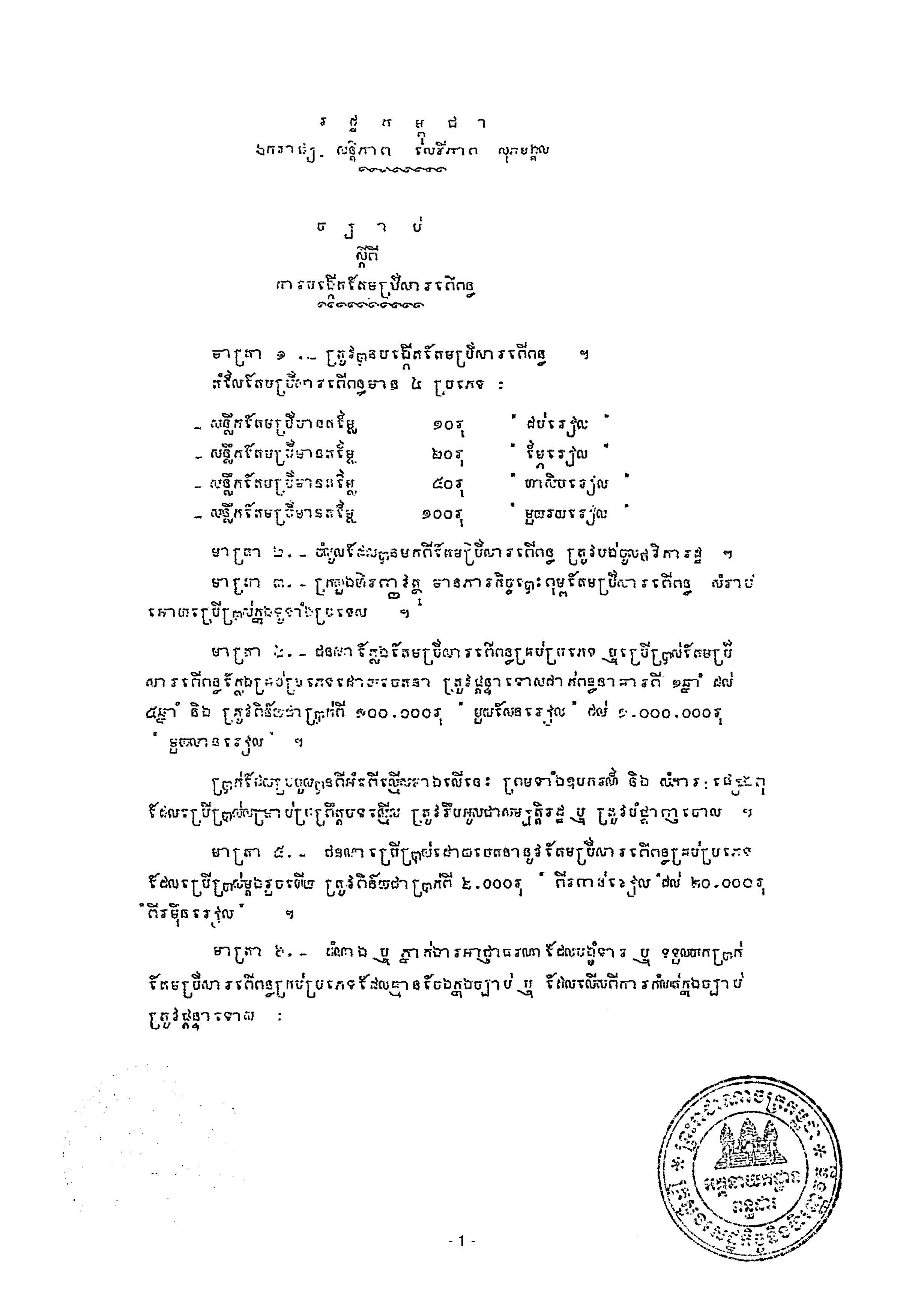 អនុក្រឹត្យ ស្តីពី ការកែសម្រួលតារាងពន្ធតែមប្រិ៍សារពើពន្ធ
