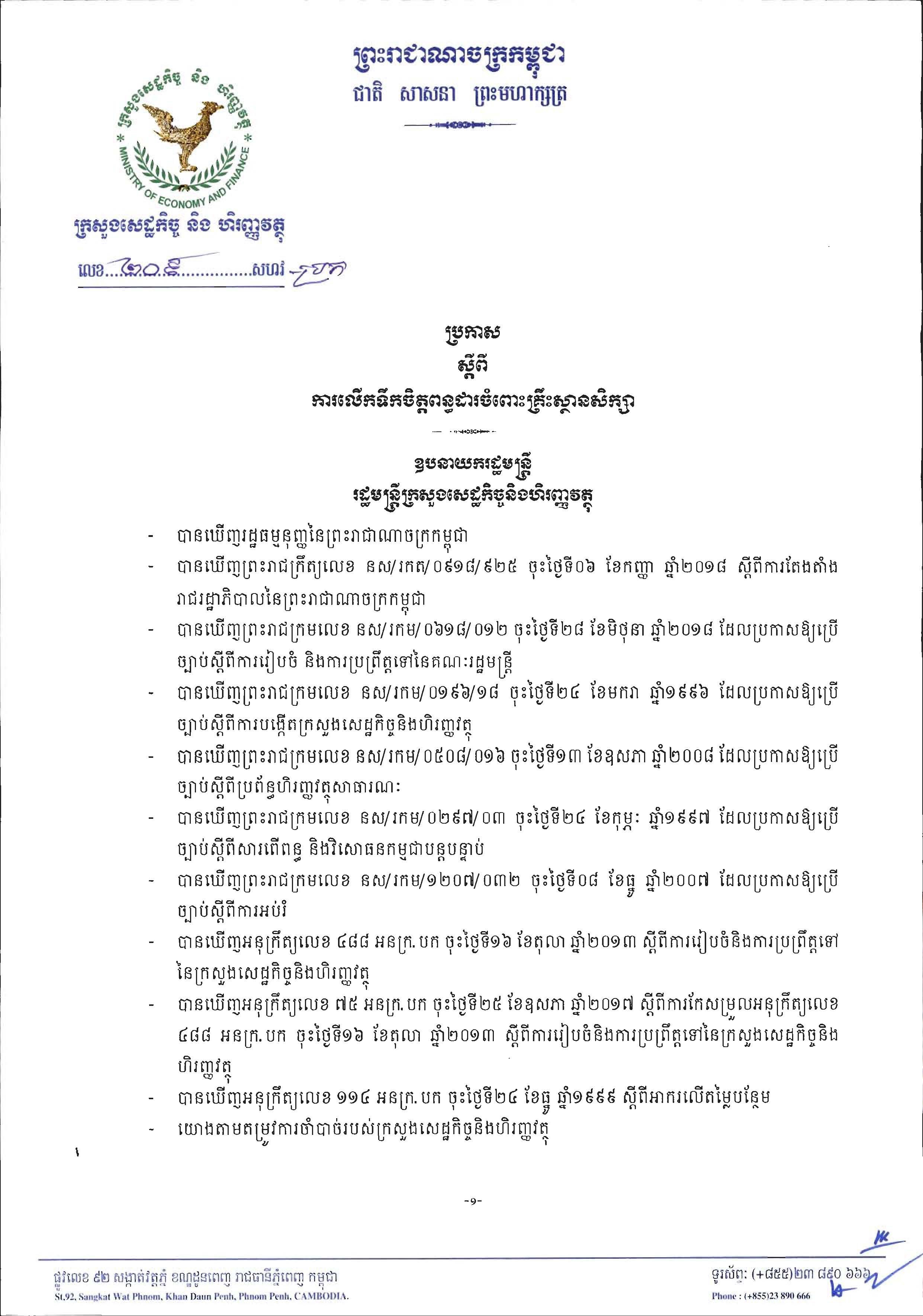 See Moreស្តីពីការអនុវត្តច្បាប់ស្តីពីវិសោធនកម្ម នៃច្បាប់ស្តីពីវិនិយោគនៃព្រះរាជាណាចក្រកម្ពុជា