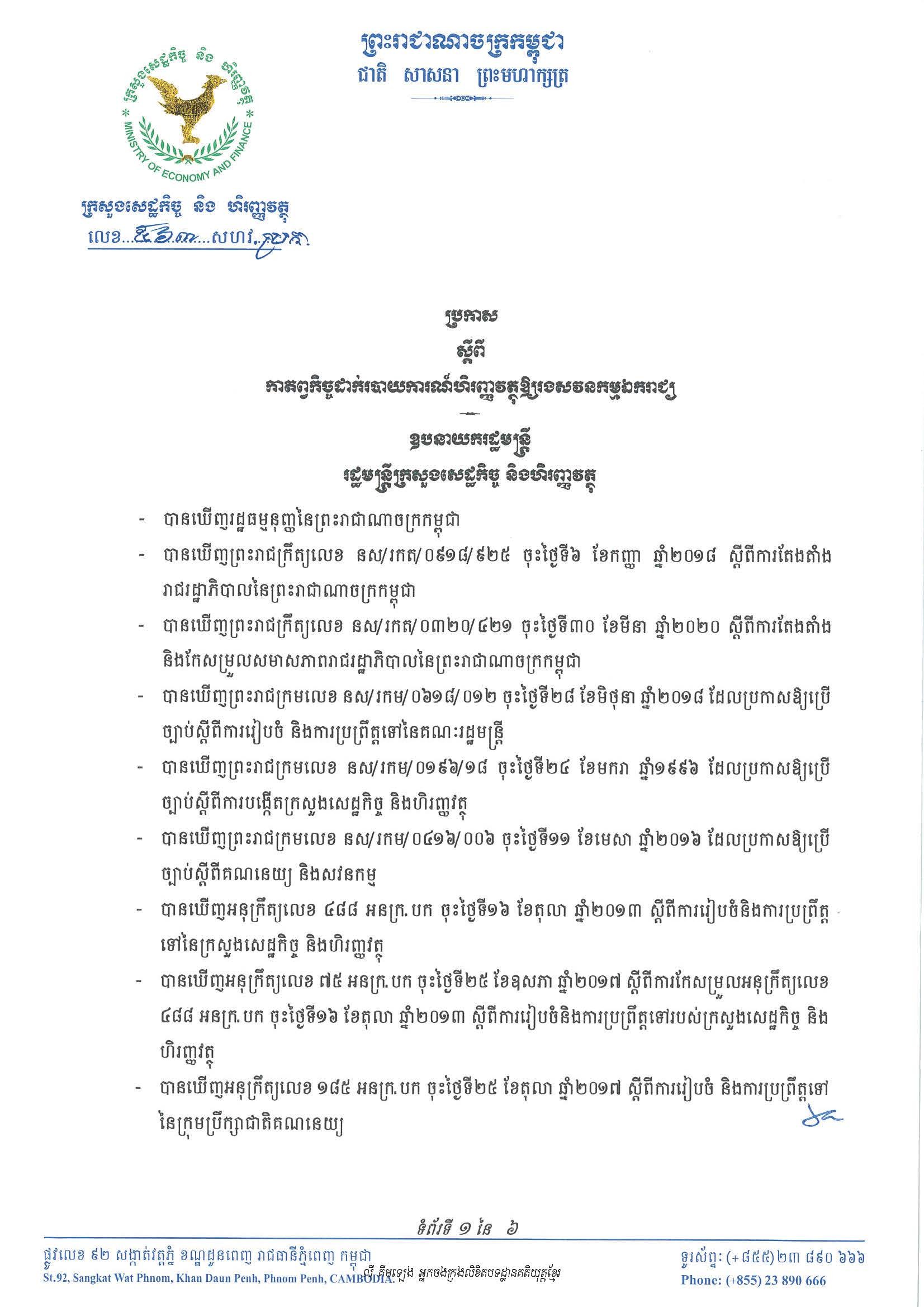 See Moreសេចក្តីណែនាំ ស្តីពី ការអនុវត្តកាតព្វកិច្ចពន្ធបង់មុនលើការបែងចែកភាគលាភ