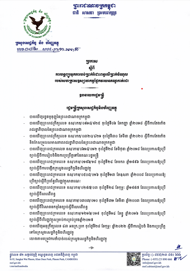 សេចក្តីណែនាំ ស្តីពី ការអនុវត្តកាតព្វកិច្ចពន្ធបង់មុនលើការបែងចែកភាគលាភ