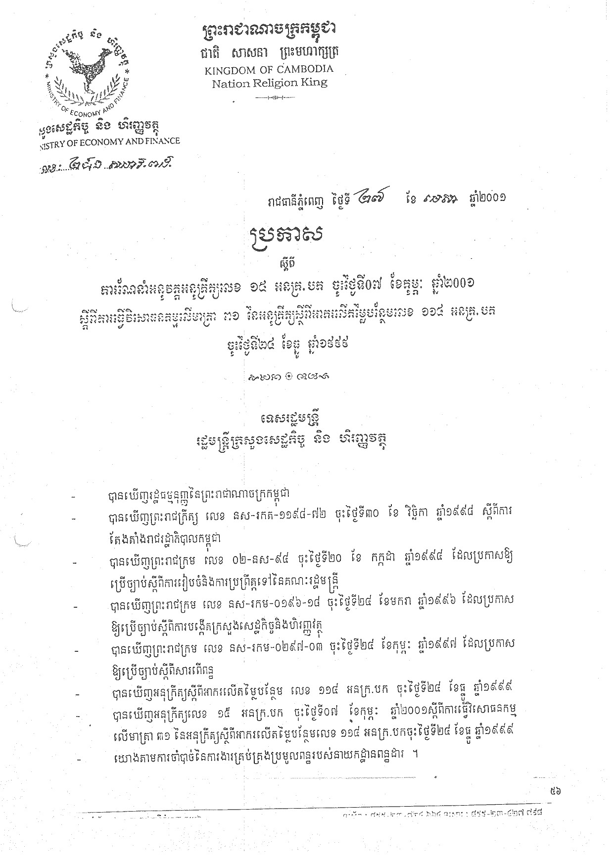 See Moreប្រកាស ស្តីពី ការចាត់ជាបន្ទុករបស់រដ្ឋនូវអាករលើតម្លៃបន្ថែមលើមុខទំនិញដែលជាអាហារជាមូលដ្ឋានសម្រាប់ការរស់នៅប្រចាំថ្ងៃរបស់ប្រជាពលរដ្ឋ