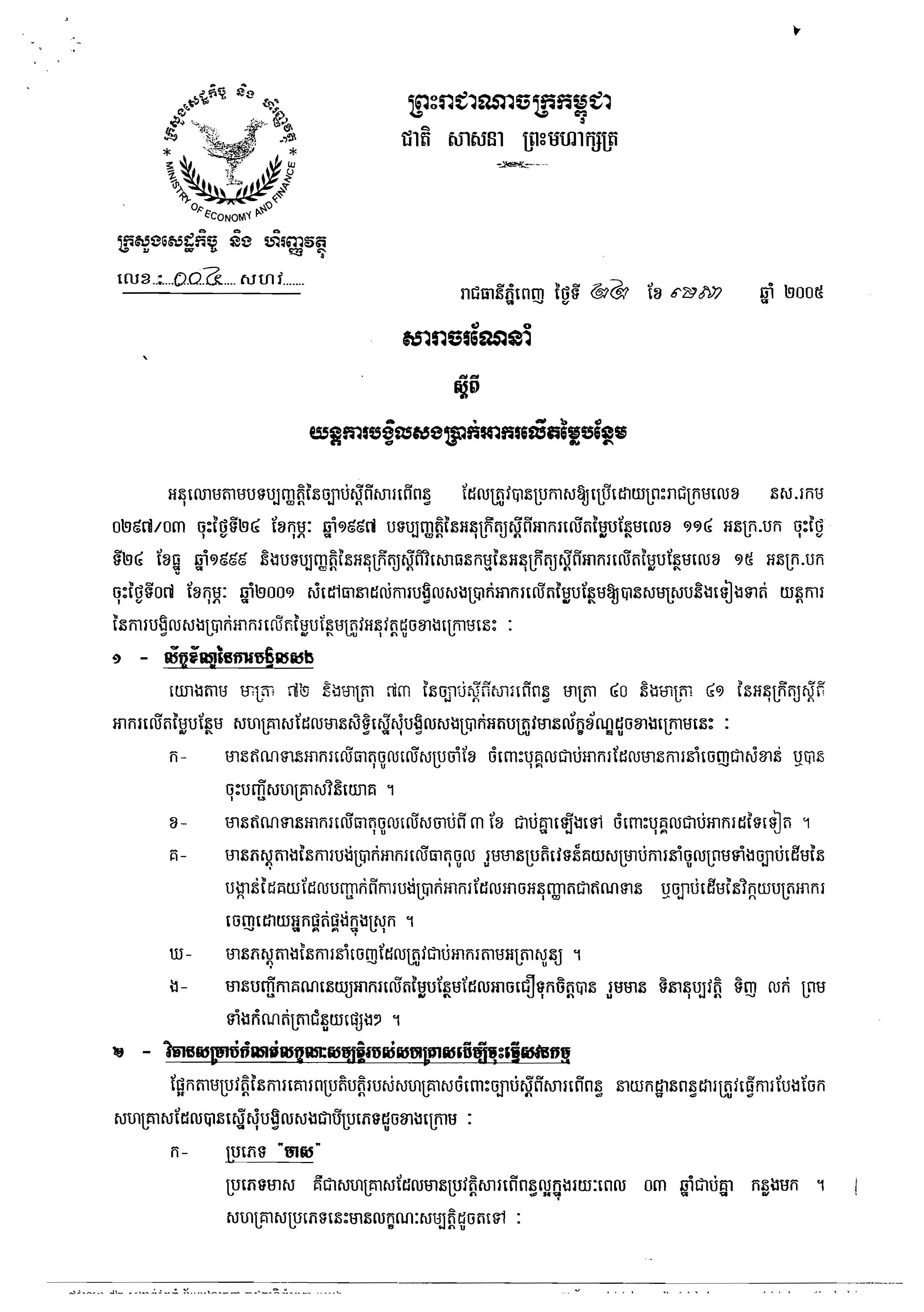 See Moreប្រកាស ស្តីពី យន្តការបង្វិលសងអាករលើតម្លៃបន្ថែម