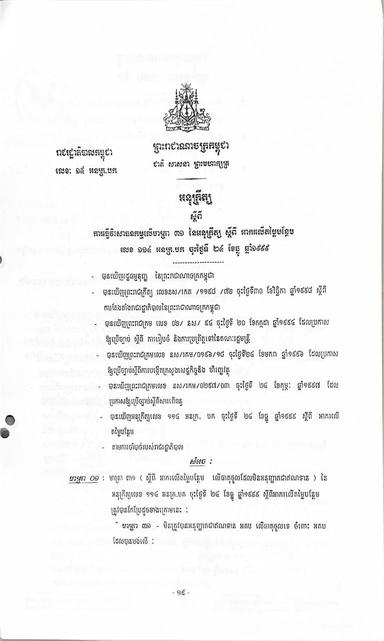 អនុក្រឹត្យ ស្តីពី អាករលើតម្លៃបន្ថែម