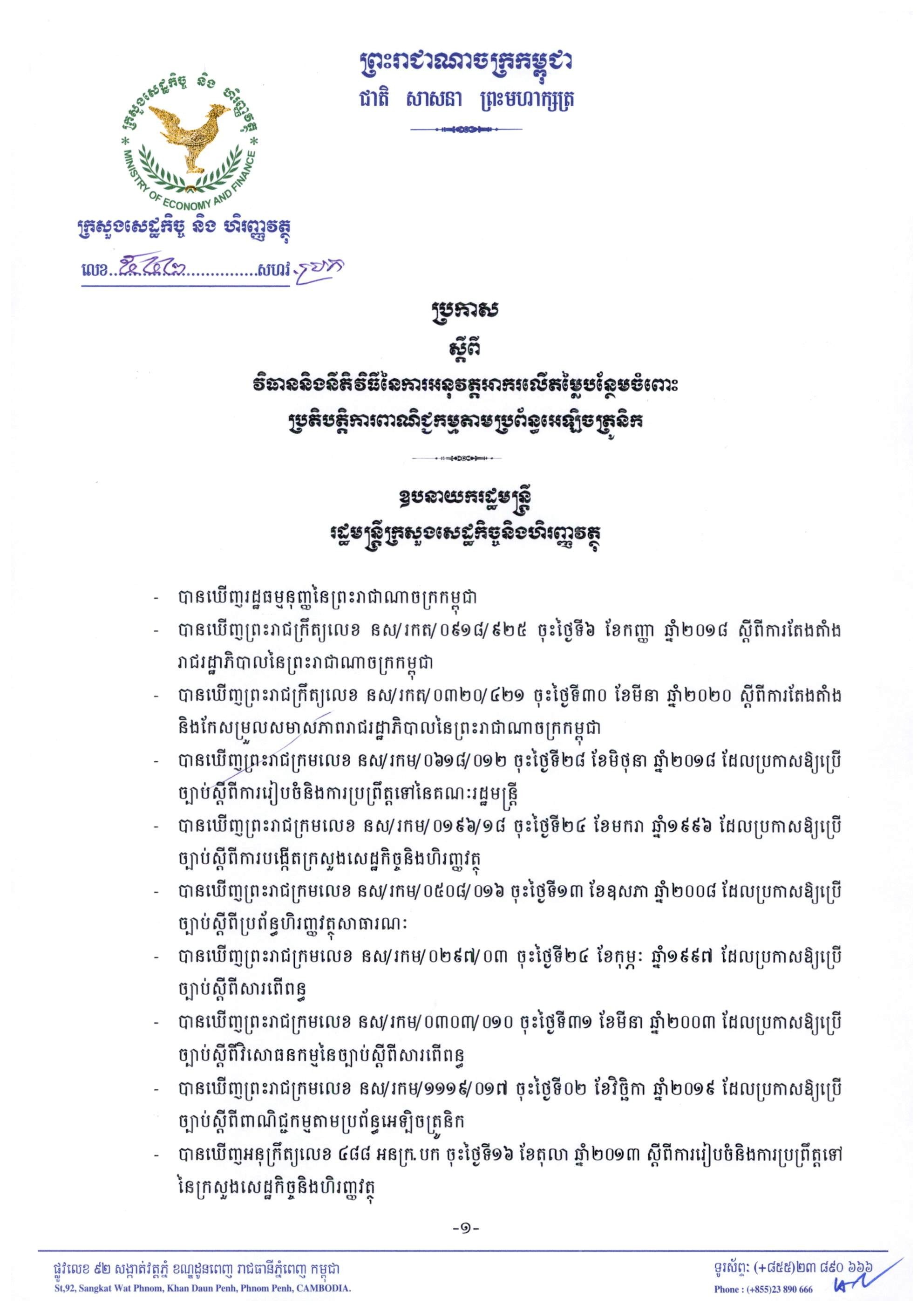 See Moreអនុក្រឹត្យ ស្តីពី ការអនុវត្តអាករលើតម្លៃបន្ថែមចំពោះពាណិជ្ចកម្មតាមប្រព័ន្ធអេឡិចត្រូនិក