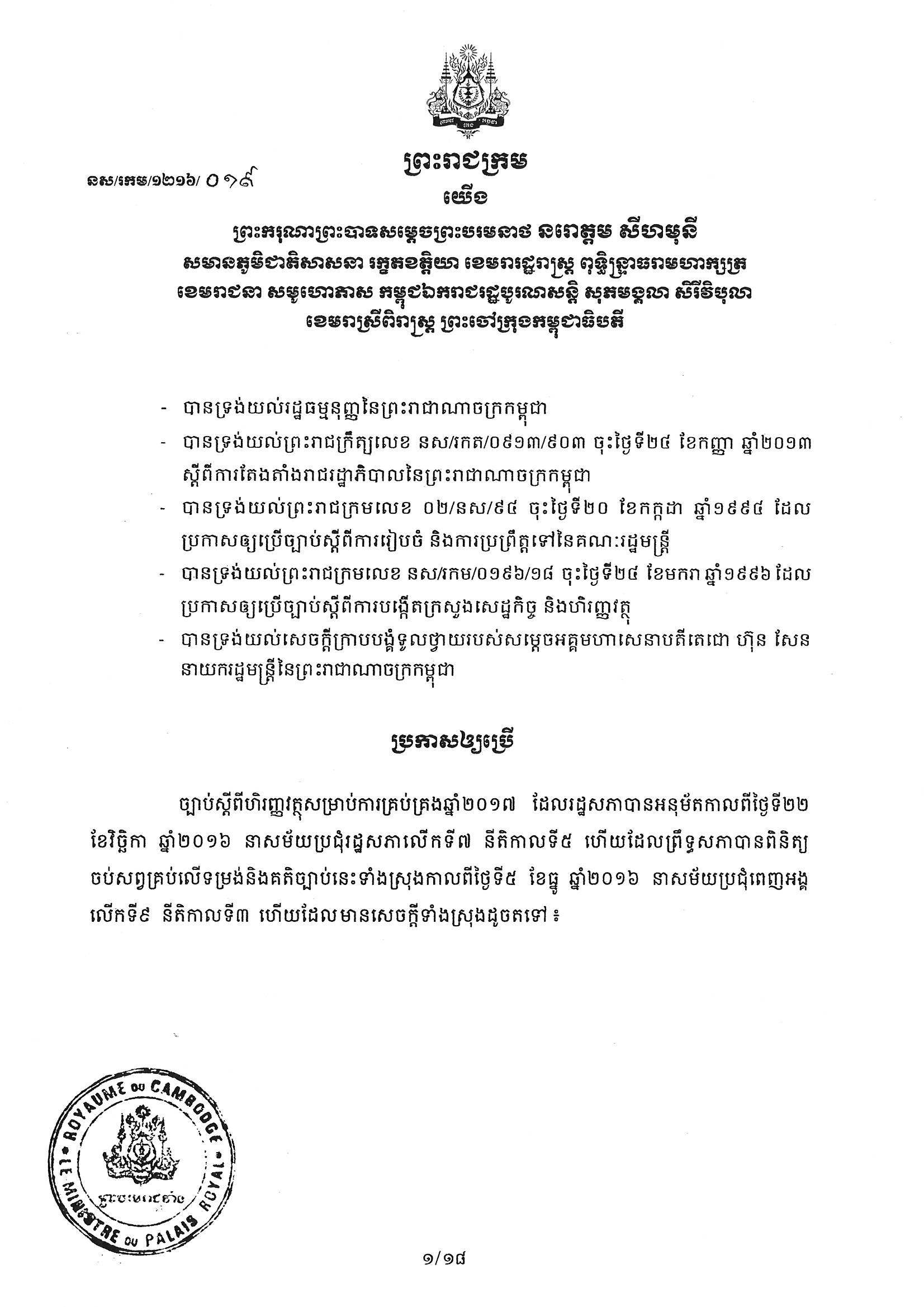 See Moreអនុក្រឹត្យ ស្តីពី ការកែសម្រួលមាត្រា៥៦ នៃអនុក្រឹត្យលេខ ១១៤ អនក្រ.បក ចុះថ្ងៃទី២៤ ខែធ្នូ ឆ្នាំ១៩៩៩ ស្តីពីអាករលើតម្លៃបន្ថែម