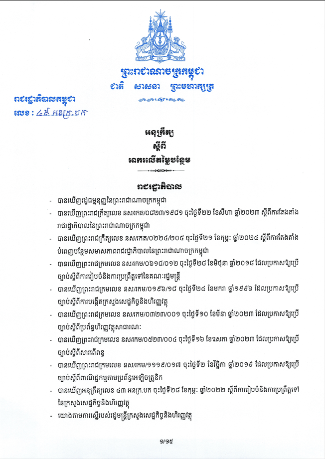 See Moreអនុក្រឹត្យ ស្តីពី ការធ្វើវិសោធនកម្មលើមាត្រា ៣១ នៃអនុក្រឹត្យ ស្តីពី អាករលើតម្លៃបន្ថែម លេខ ១១៤ អនក្រ.បក ចុះថ្ងៃទី ២៤ ខែធ្នូ ឆ្នាំ១៩៩៩