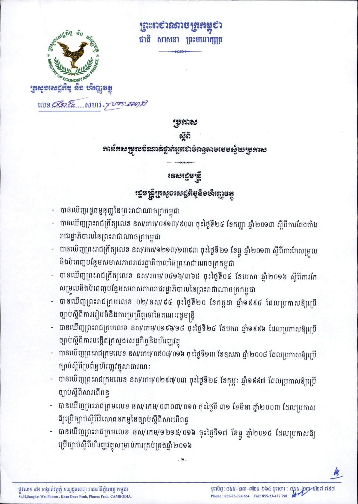 ប្រកាស ស្តីពី ការប្រមូលពន្ធប្រថាប់ត្រា