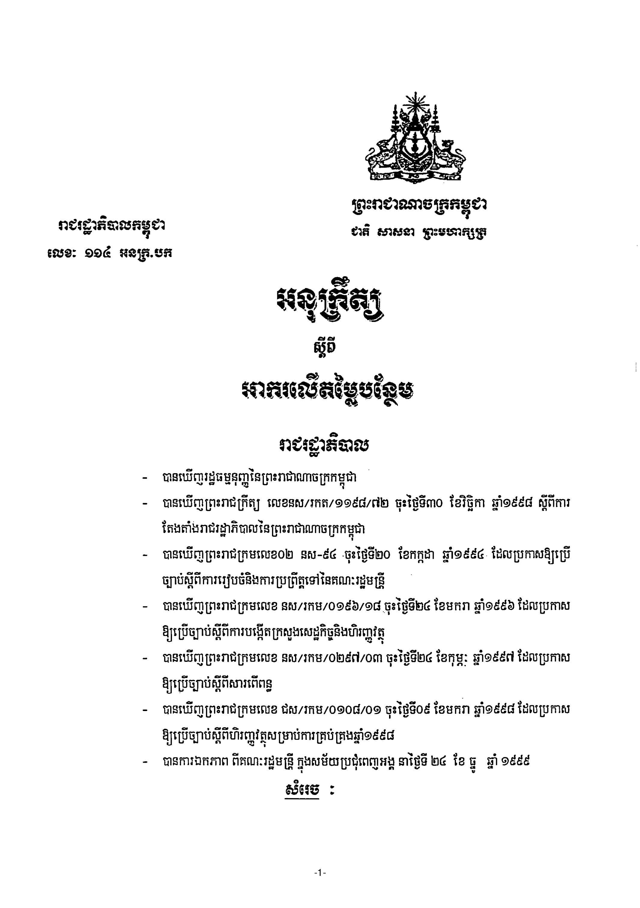 អនុក្រឹត្យ ស្តីពី ការចុះបញ្ជីអាជីវកម្ម តាមប្រព័ន្ធបច្ចេកវិទ្យាព័ត៌មាន