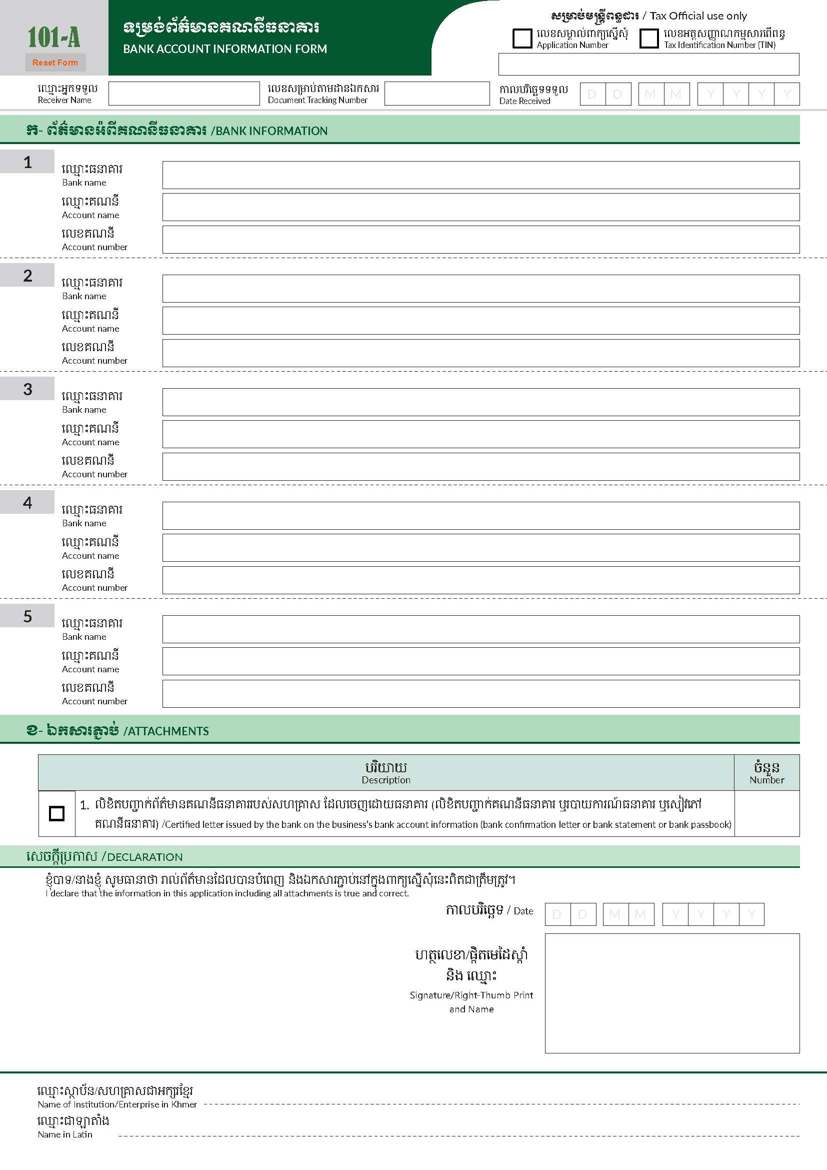 See Moreទម្រង់ព័ត៌មានគណនីធនាគារ ប្រភេទ C