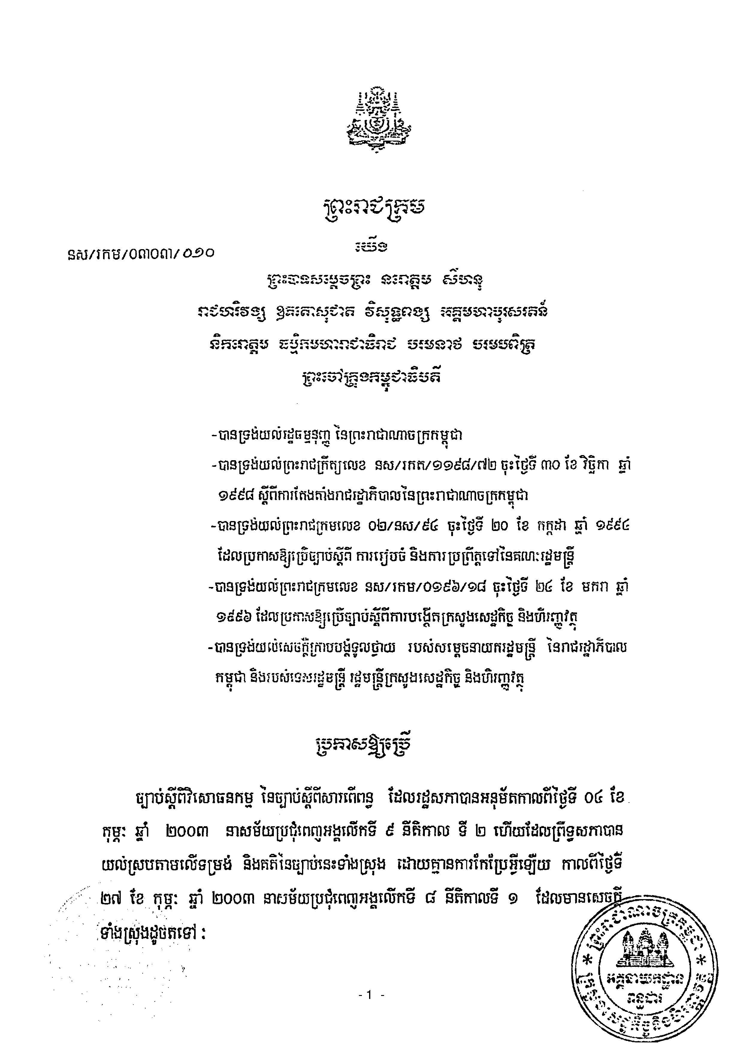 អនុក្រឹត្យ ស្តីពី ការលើកទឹកចិត្តពន្ធដារក្នុងវិស័យមូលបត្រ