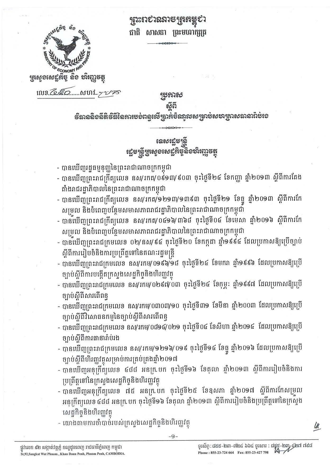 See Moreប្រកាស ស្តីពី ការណែនាំអនុវត្តការបង់ពន្ធកាត់ទុកលើការប្រាក់ចំពោះប្រាក់ដែលខ្ចីក្នុងស្រុក និងពីបរទេសរបស់ធនាគារ និងគ្រឹះស្ថានមីក្រូហិរញ្ញវត្ថុ