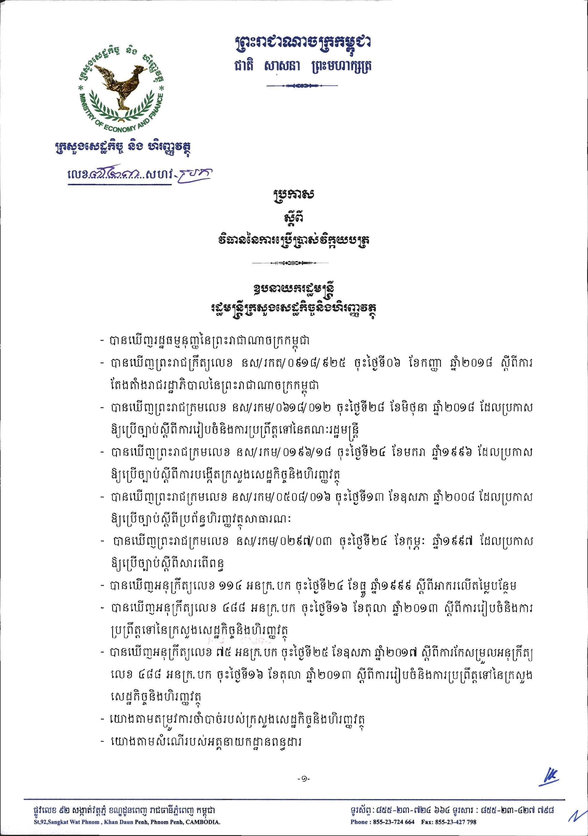 See Moreសេចក្តីណែនាំ ស្តីពី ការអនុវត្តកាតព្វកិច្ចពន្ធកាត់ទុកចំពោះអាជីវកម្មក្នុងវិស័យបញ្ចាំងខ្សែភាពយន្ត និងអាជីវកម្មជួលអចលនទ្រព្យបន្ត