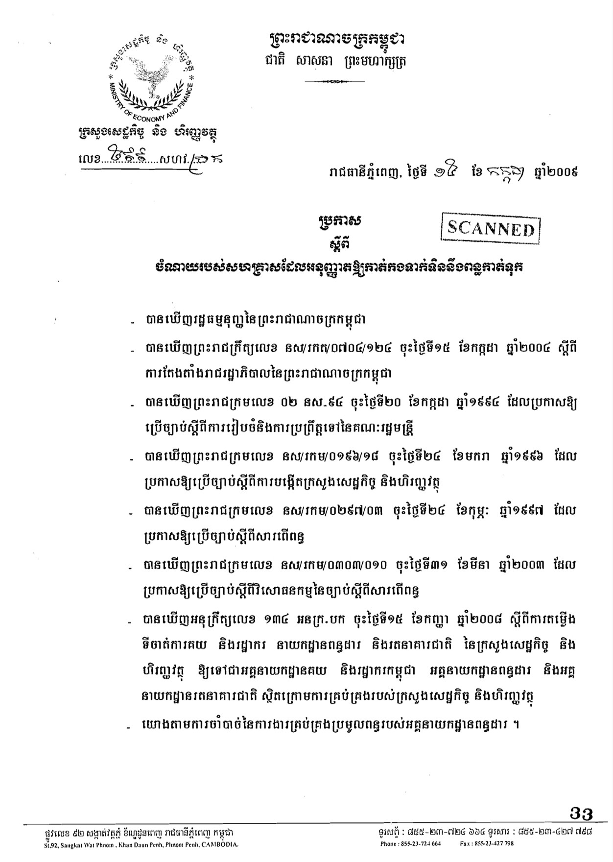 ប្រកាស ស្តីពី កាតព្វកិច្ចសារពើពន្ធចំពោះសហគ្រាសប្រកបអាជីវកម្មជាភ្នាក់ងារទេសចរណ៍ និងការីទេសចរណ៍
