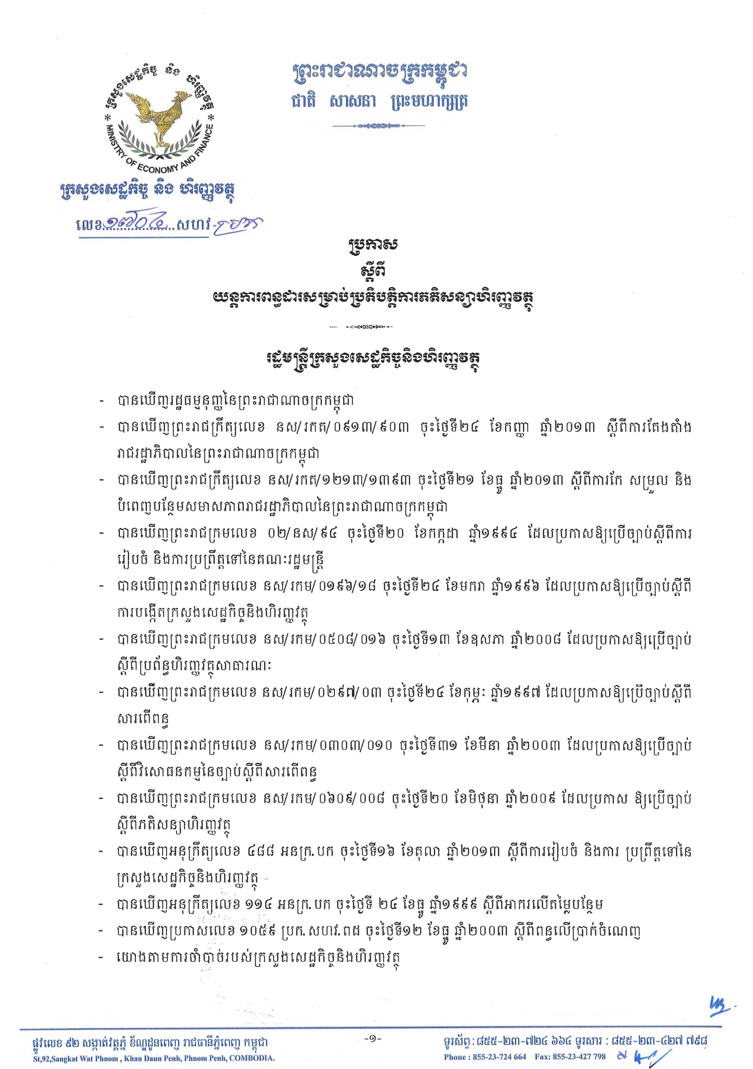 See Moreច្បាប់ស្តីពីវិសោធនកម្ម នៃច្បាប់ស្តីពីសារពើពន្ធ