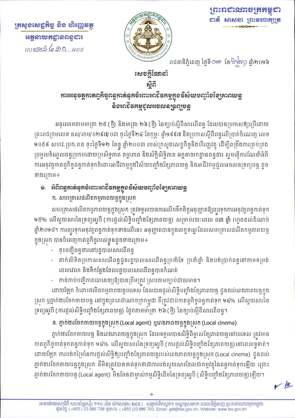 ប្រកាស ស្តីពី ការណែនាំអនុវត្តពន្ធកាត់ទុកលើការបែងចែកភាគលាភ