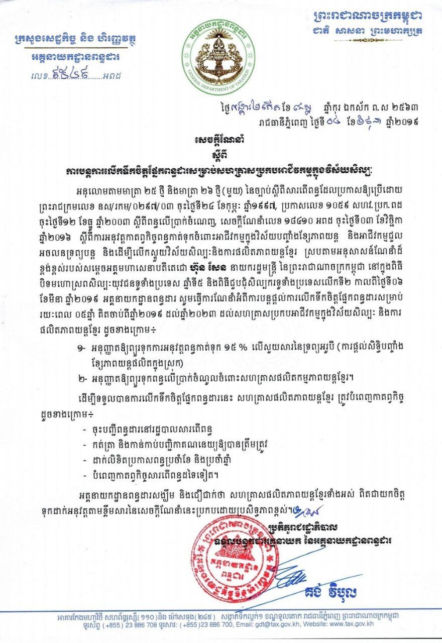 See Moreសេចក្តីណែនាំ ស្តីពីការប្រើប្រាស់លេខរៀងវិក្កយបត្រសម្រាប់អ្នកជាប់ពន្ធដែលបានចុះបញ្ជីពន្ធដារតាមរបបស្វ័យប្រកាស