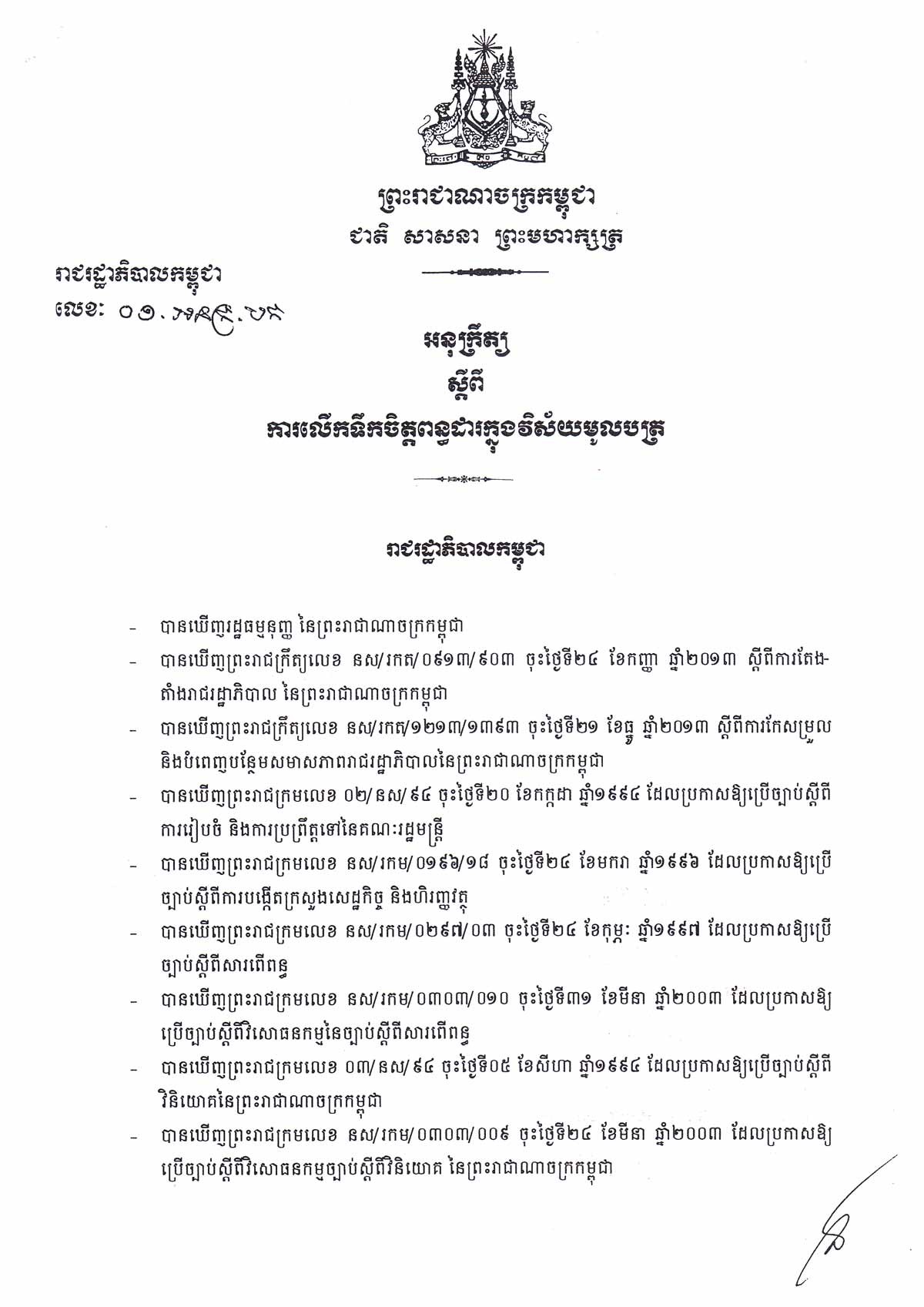 ច្បាប់ស្តីពីវិសោធនកម្ម នៃច្បាប់ស្តីពីសារពើពន្ធ