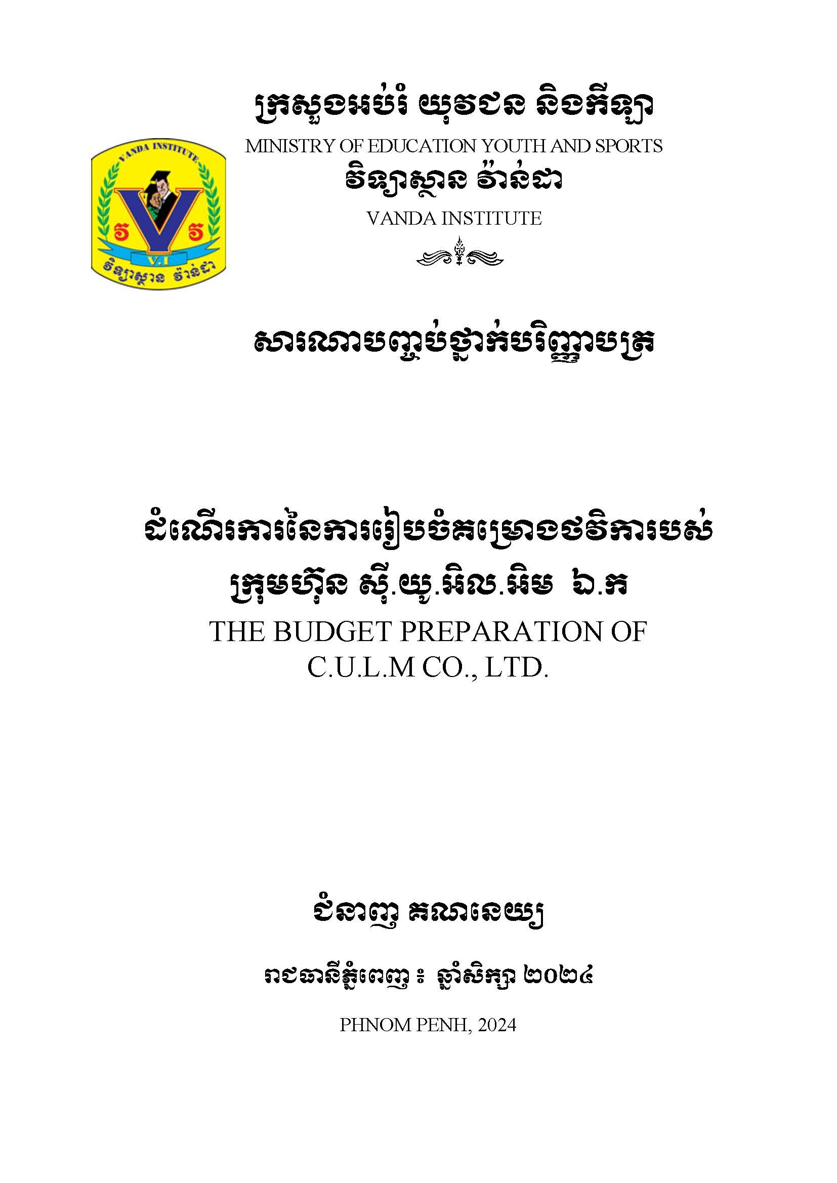 ដំណើរការនៃការគ្រប់គ្រងហិរញ្ញវត្ថុរបស់ក្រុមហ៊ុនធានារ៉ាប់រងអាយុជីវិត មេនូឡាយហ្វ៍ ខេមបូឌា (សាខាទួលគោក)