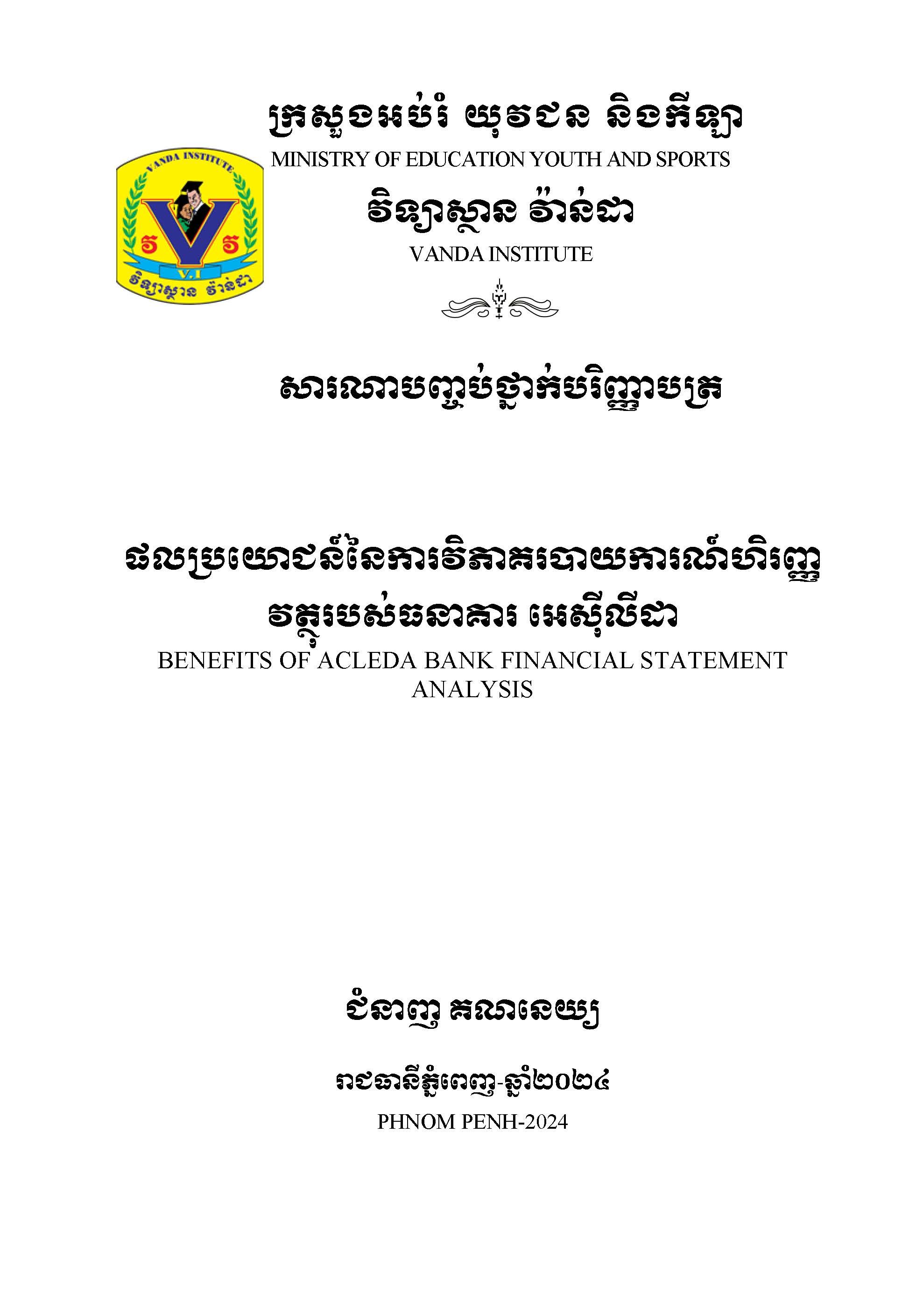 ប្រសិទ្ធភាពនៃការគ្រប់គ្រងឥណទេយ្យរបស់ ធនាគារ អេស៊ីលីដា ភីអិលស៊ី