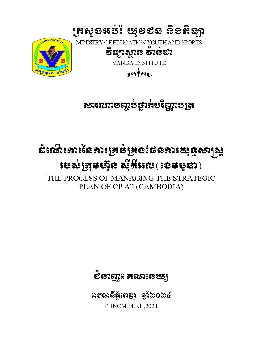 ប្រសិទ្ធភាពនៃការគ្រប់គ្រងសាច់ប្រាក់របស់ក្រុមហ៊ុន ខ្មែរប៊ែរវើរីជីស