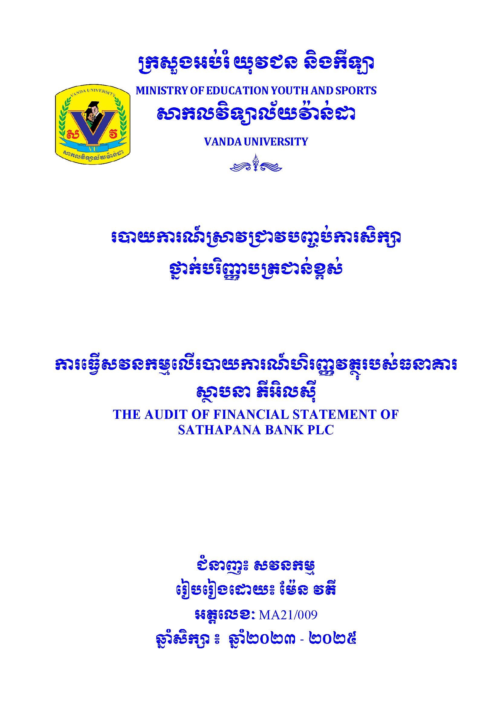 របាយការណ៍ស្រាវជ្រាវបញ្ចប់ថ្នាក់បរិញ្ញាបត្រជាន់ខ្ពស់ ជំនាញ សវនកម្ម / FinalPaper