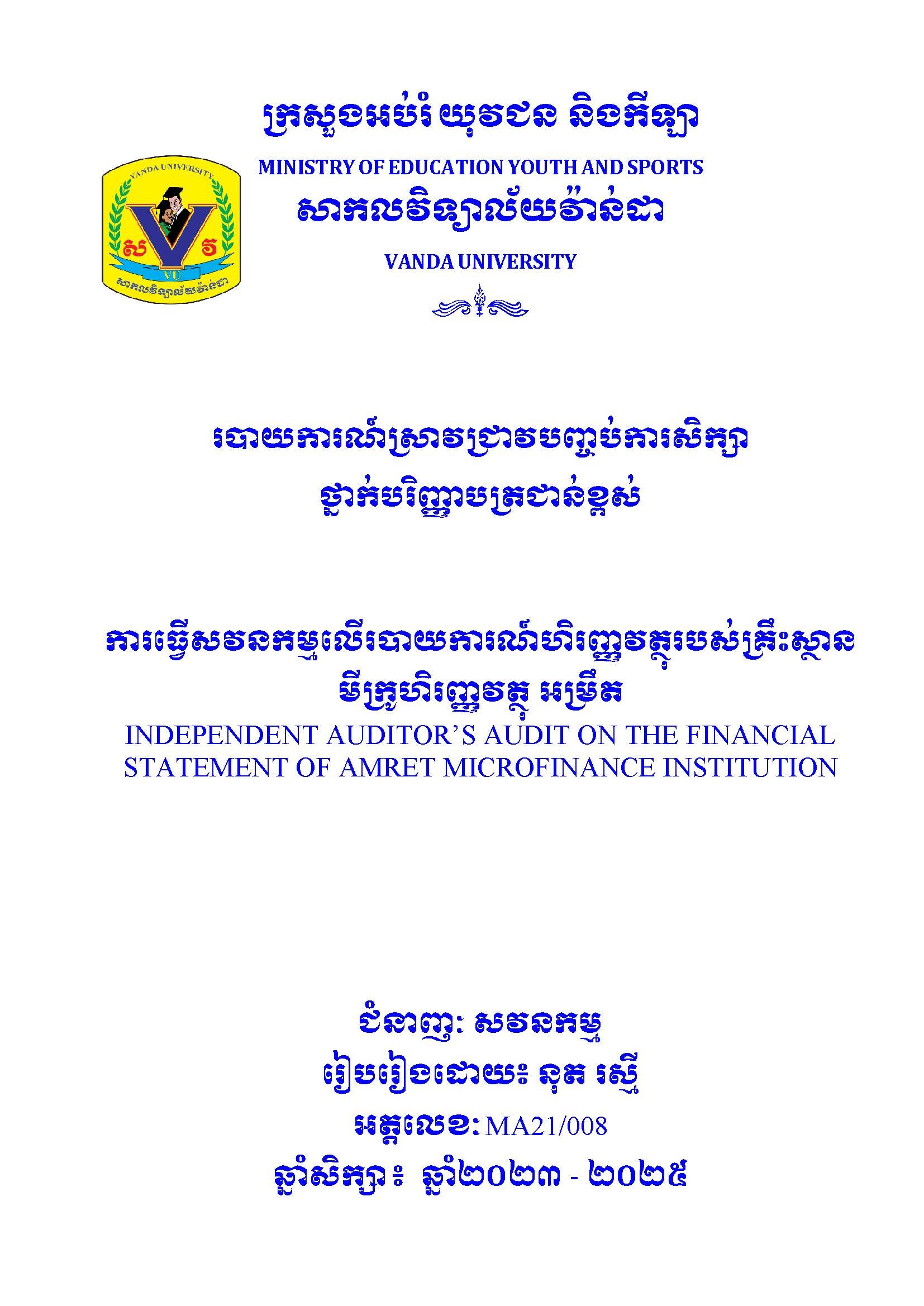 របាយការណ៍ស្រាវជ្រាវបញ្ចប់ថ្នាក់បរិញ្ញាបត្រជាន់ខ្ពស់ ជំនាញ សវនកម្ម / FinalPaper