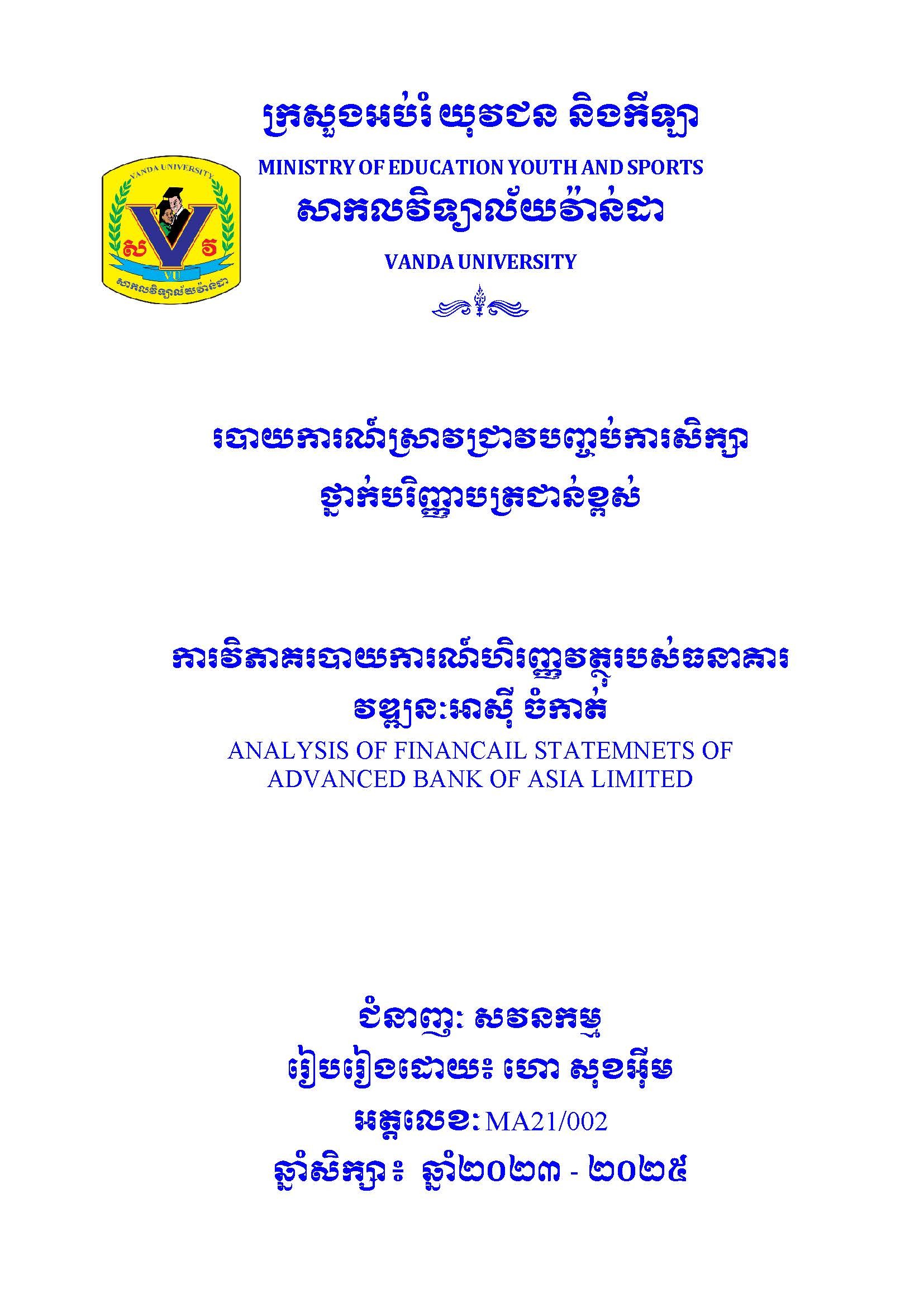 របាយការណ៍ស្រាវជ្រាវបញ្ចប់ថ្នាក់បរិញ្ញាបត្រជាន់ខ្ពស់ ជំនាញ សវនកម្ម / FinalPaper