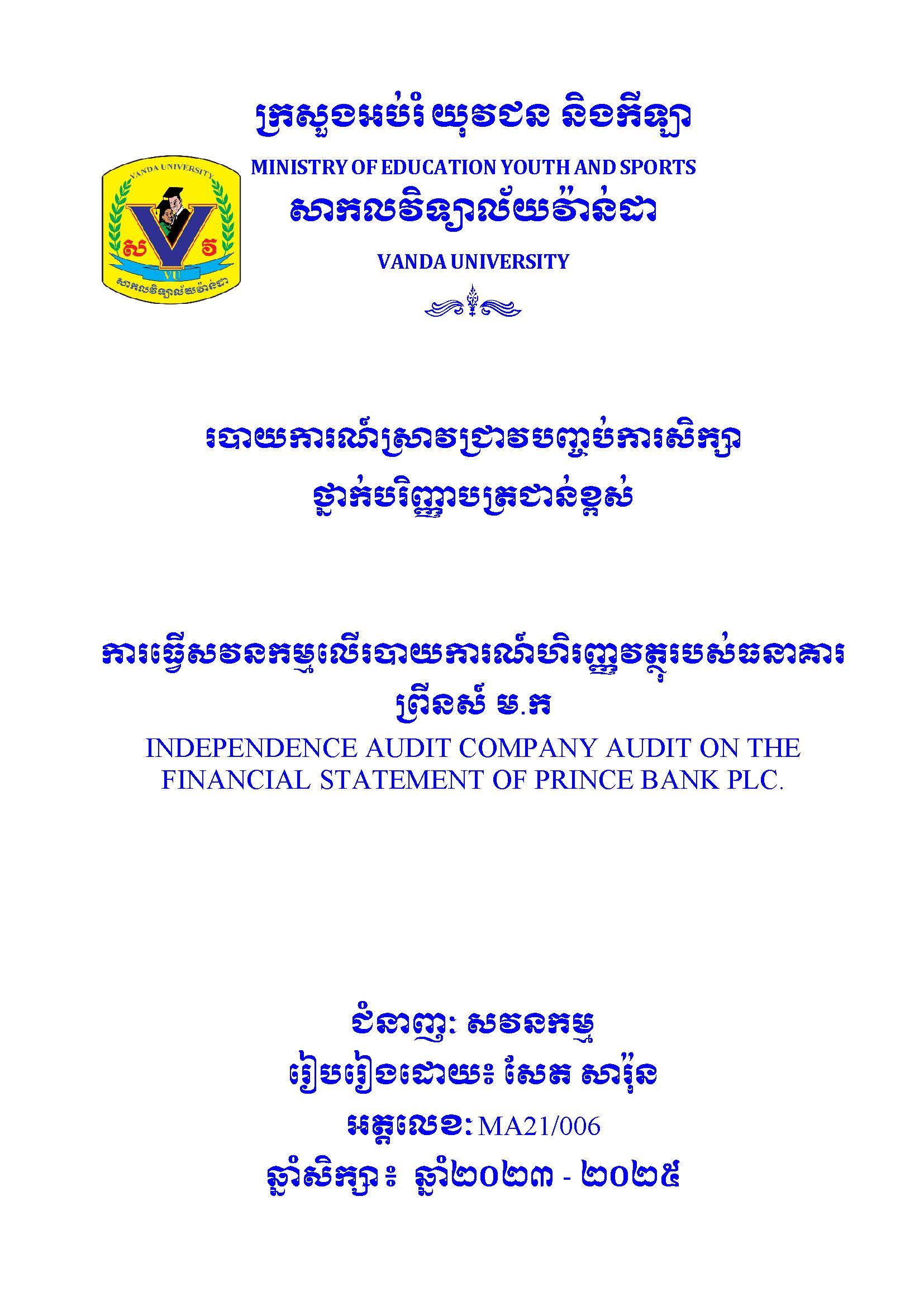 របាយការណ៍ស្រាវជ្រាវបញ្ចប់ថ្នាក់បរិញ្ញាបត្រជាន់ខ្ពស់ ជំនាញ សវនកម្ម / FinalPaper