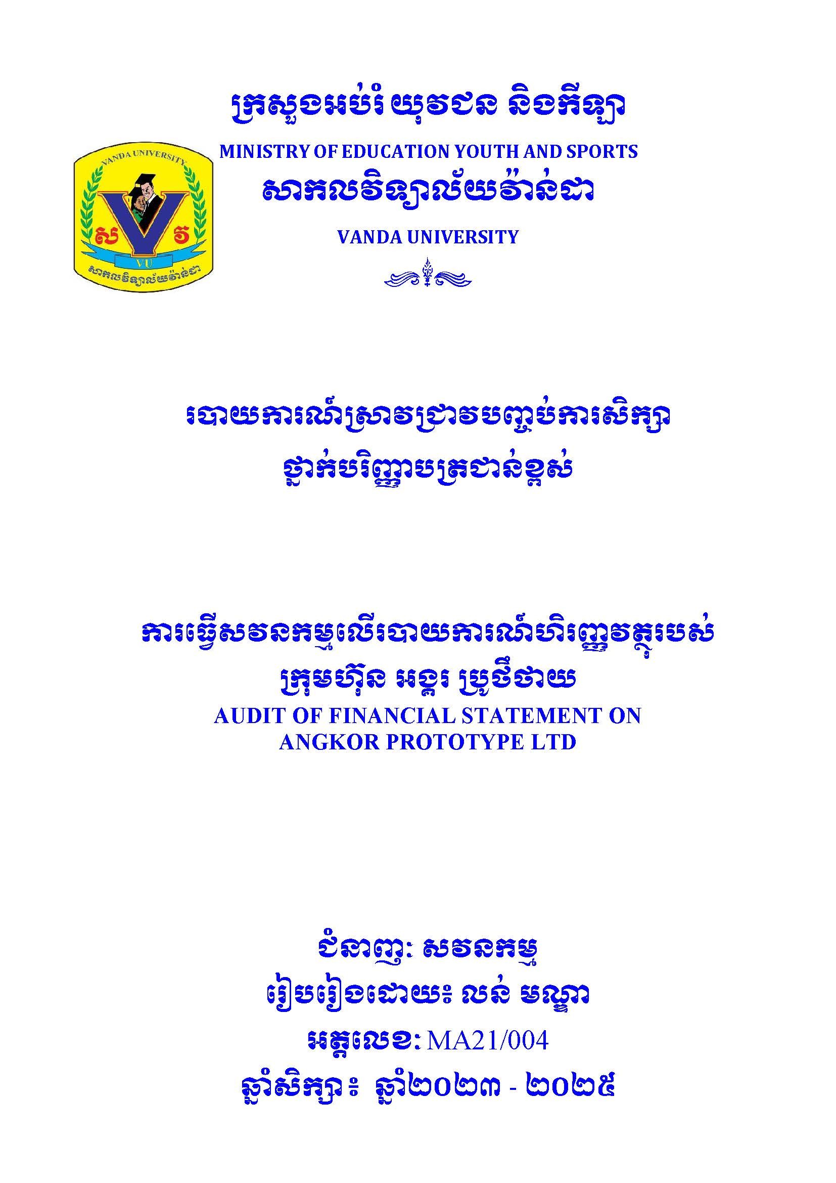 របាយការណ៍ស្រាវជ្រាវបញ្ចប់ថ្នាក់បរិញ្ញាបត្រជាន់ខ្ពស់ ជំនាញ សវនកម្ម / FinalPaper